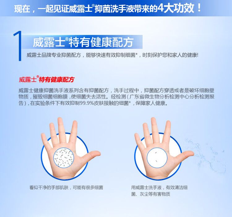 商品名称:威露士 健康抑菌洗手液4件套装 (瓶装525ml+补充装525mlx3袋)1100202421016
