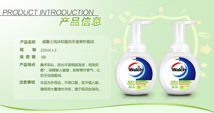 商品名称:威露士 泡沫抑菌洗手液青柠盈润两支装225ml*211201010035