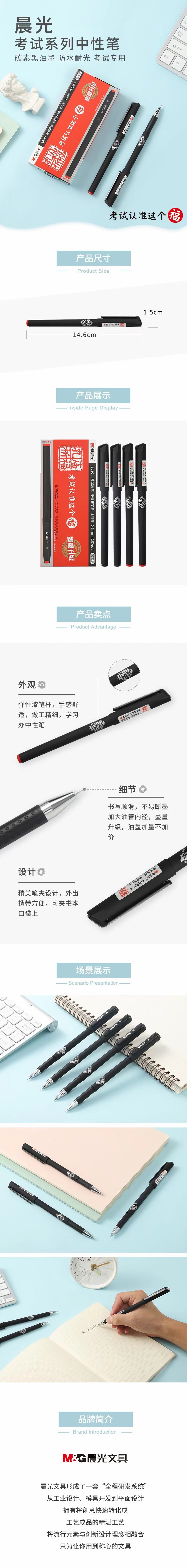 商品名称:晨光 0.5mm黑色孔庙祈福考试签字拔盖中性笔 12支/盒*2盒-AGPB0201A