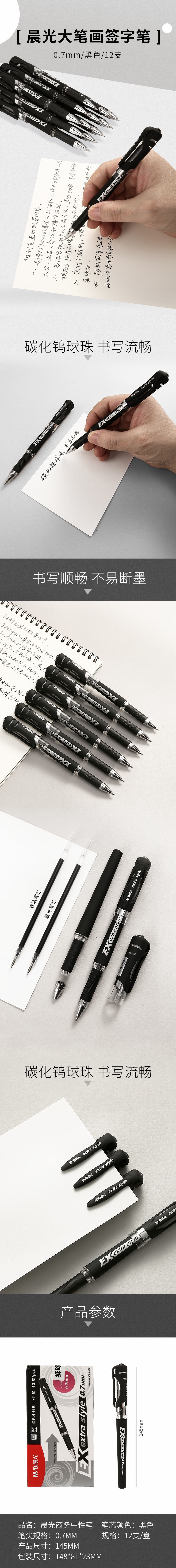商品名称:晨光 0.7mm黑色拔盖中性笔 12支/盒-GP1115A