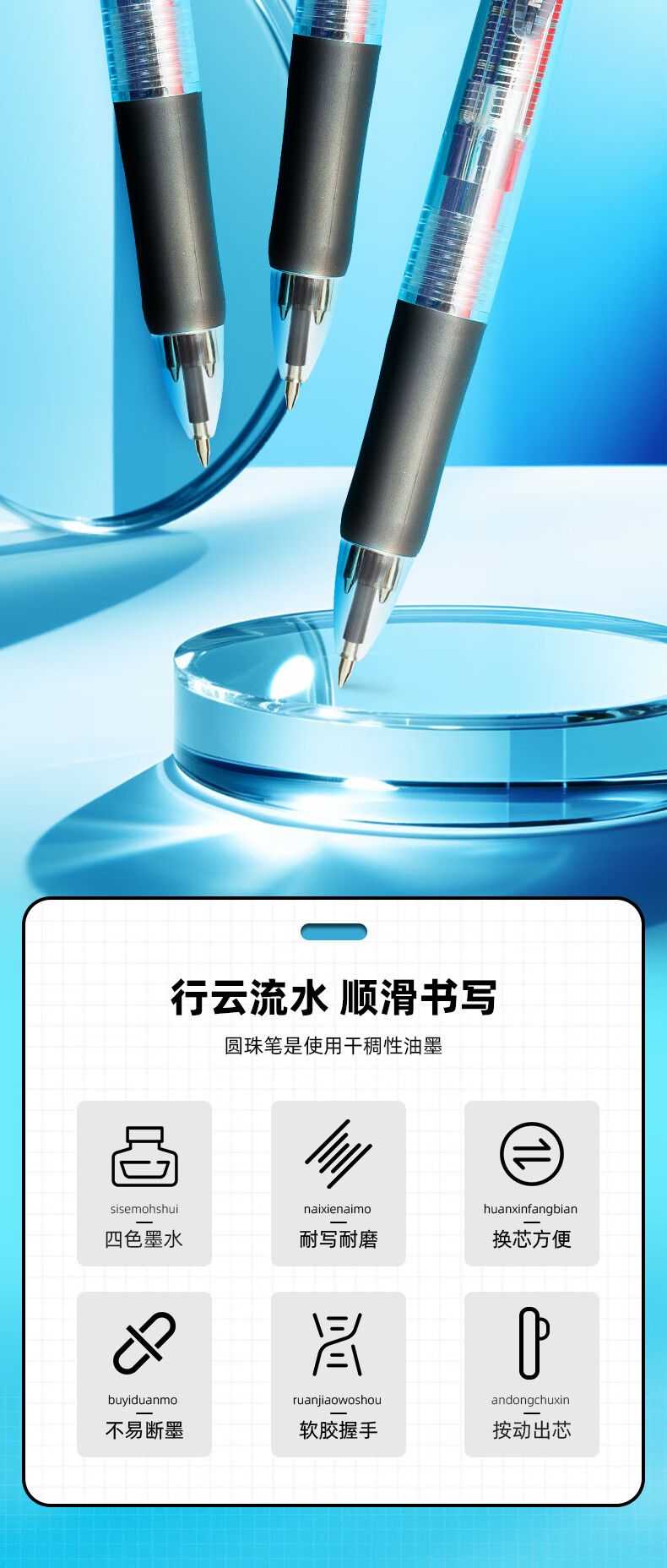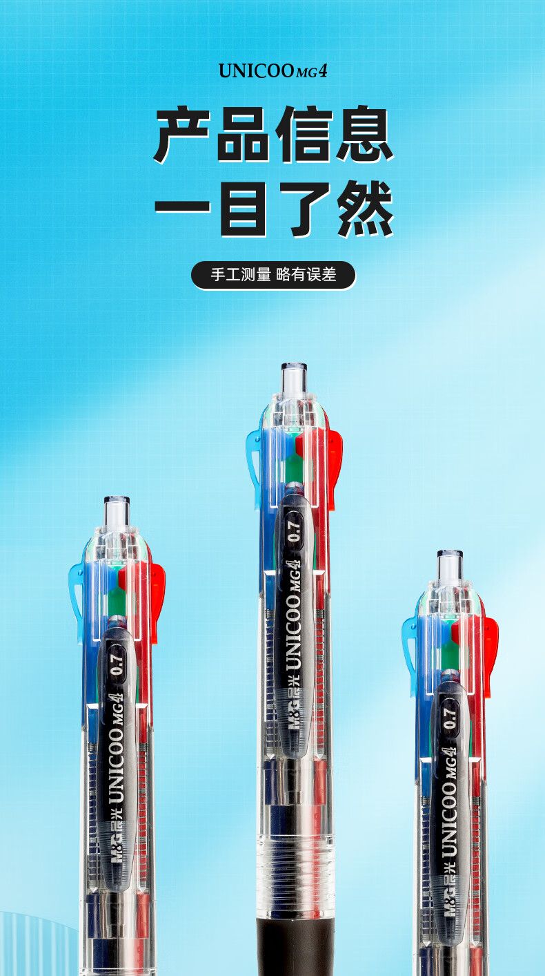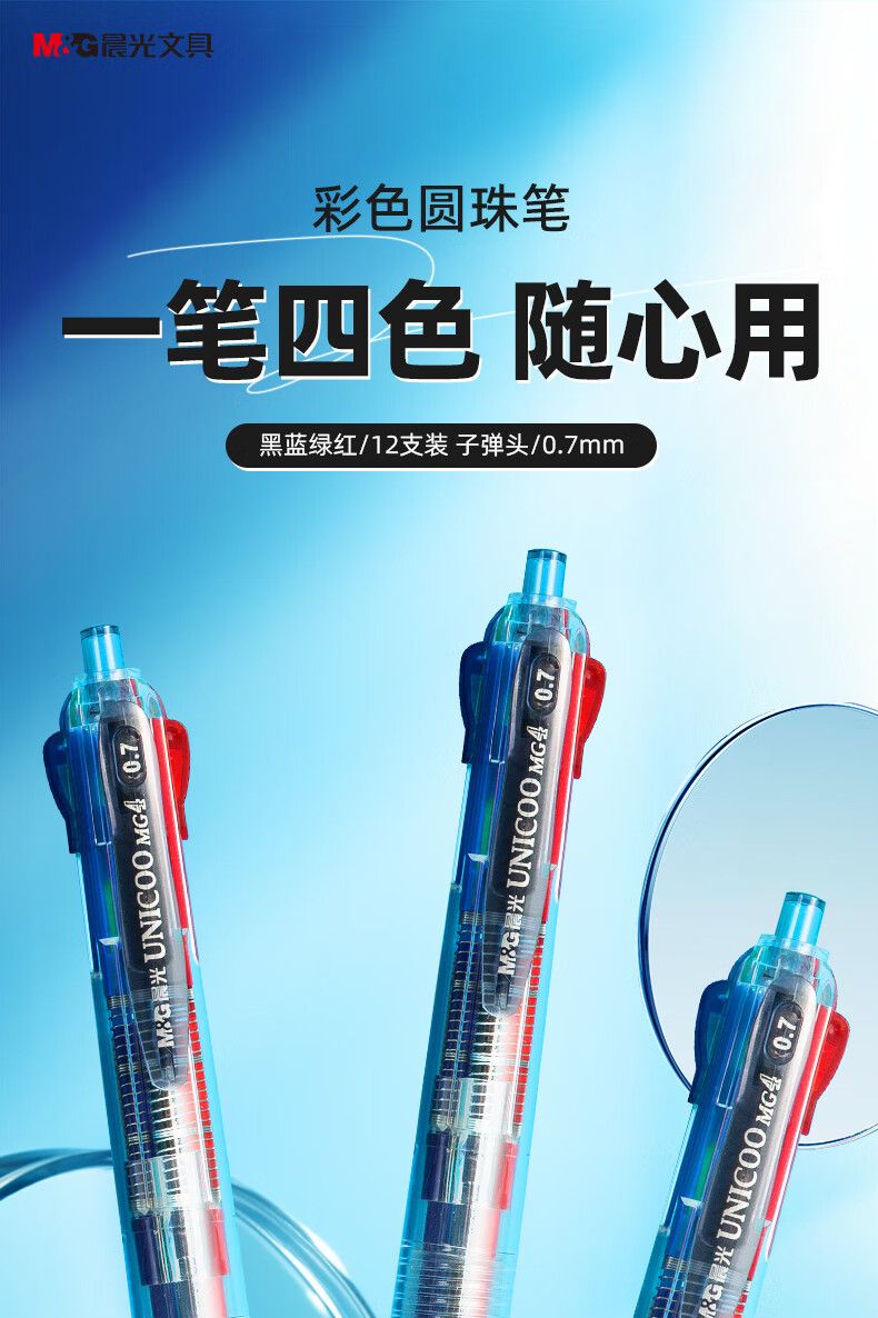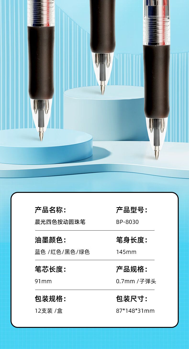 商品名称:晨光 0.7mm四色圆珠笔中央开关 12支/盒-BP8030