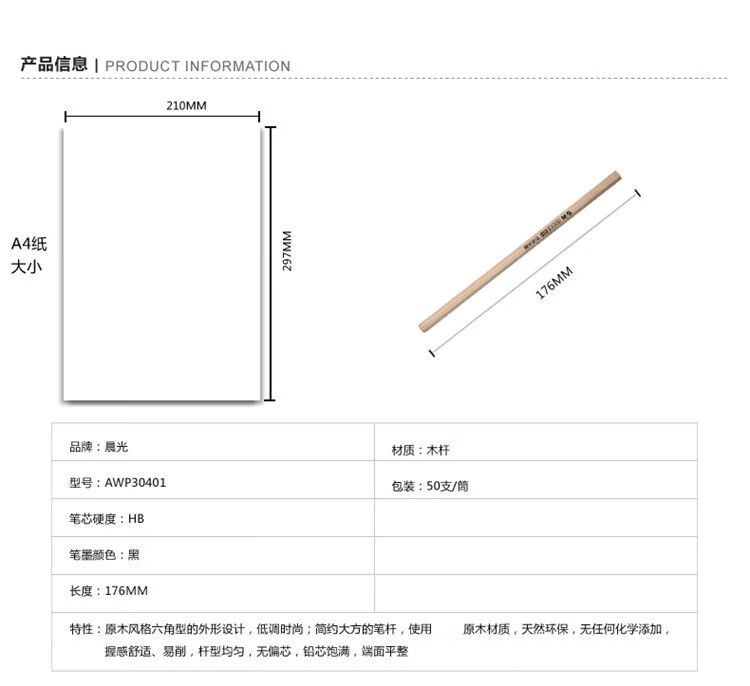 商品名称:晨光 HB六角铅笔-优品-50支/筒 AWP30401