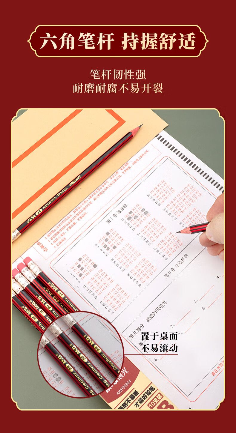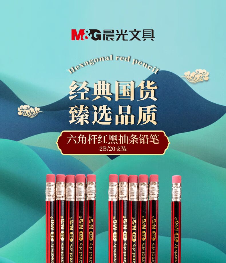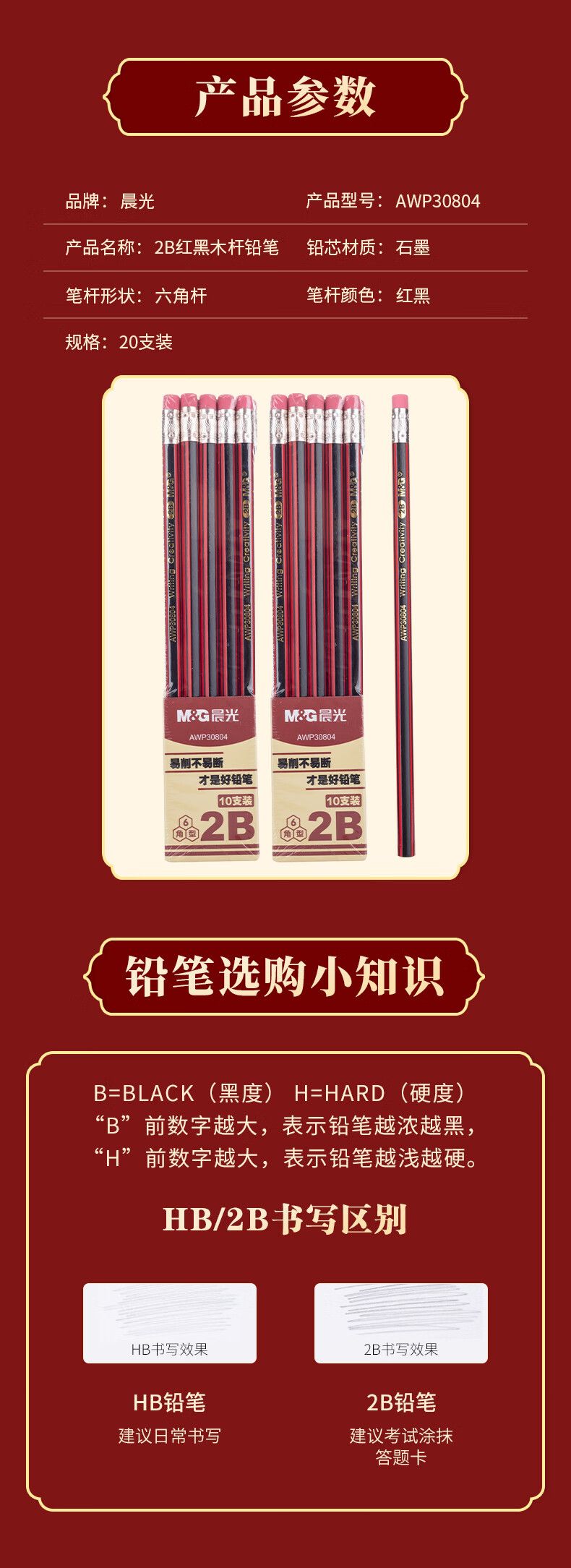 商品名称:晨光 2B红黑抽条六角木杆铅笔 10支/盒*4盒-AWP30804