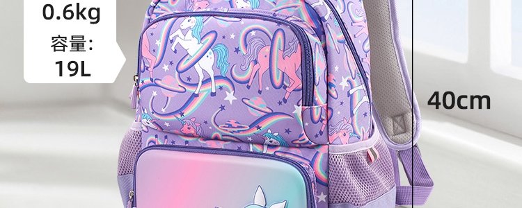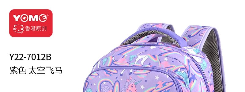 商品名称:香港 YOME 奇思妙想系列护脊儿童书包 紫色太空飞马( 适合1-3年级)