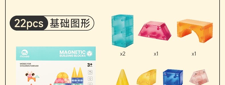商品名称:小象莫贝(mobee)立体磁吸积木-22PCS 蓝色