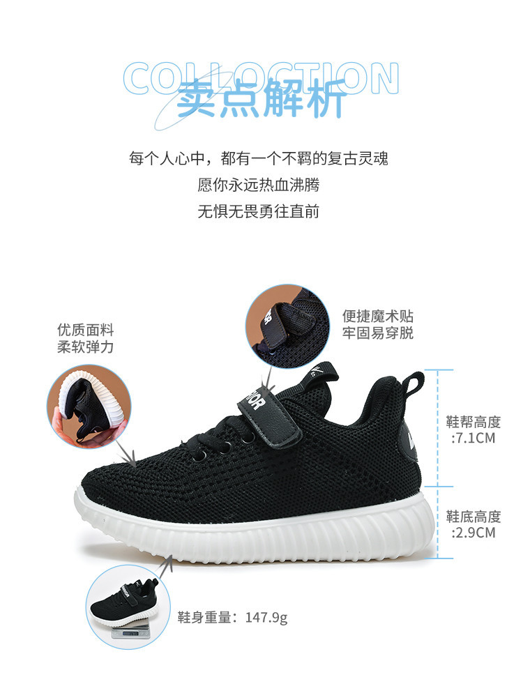 商品名称:春季爆款童鞋透气飞织儿童运动鞋男女童魔术贴休闲鞋百搭 696029
