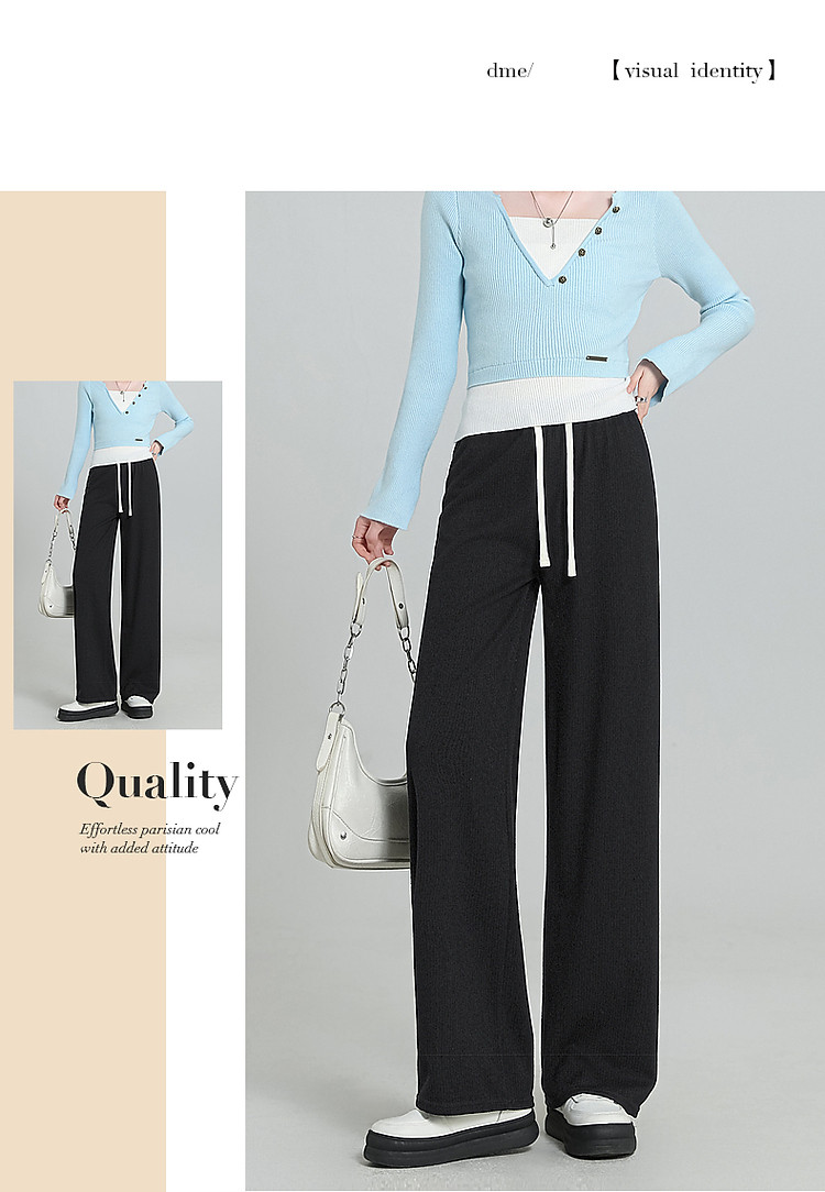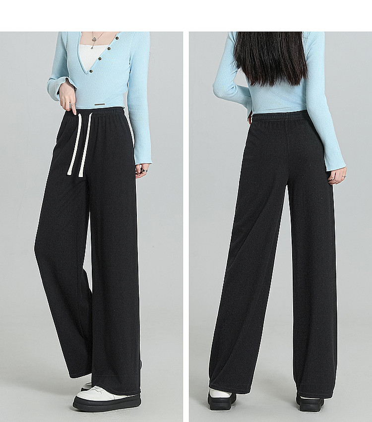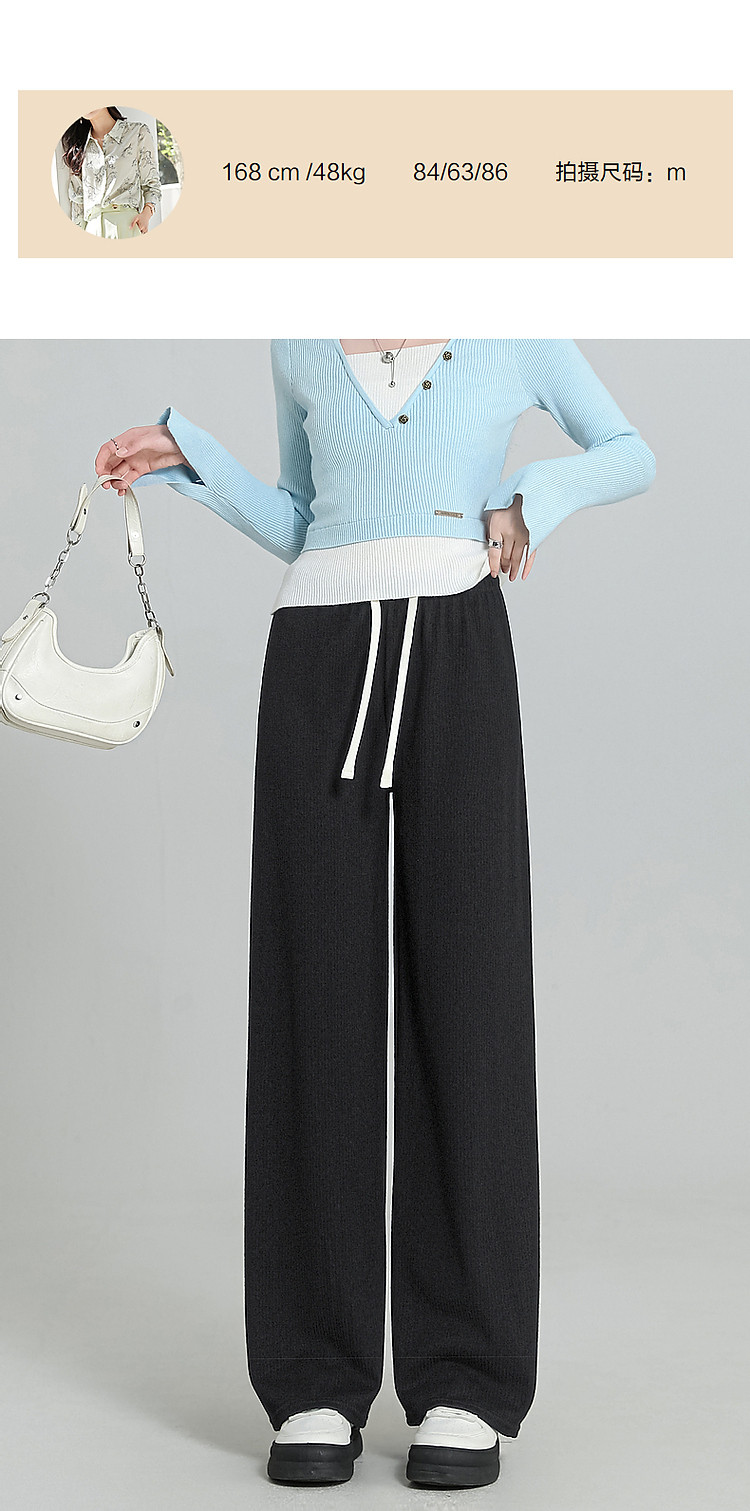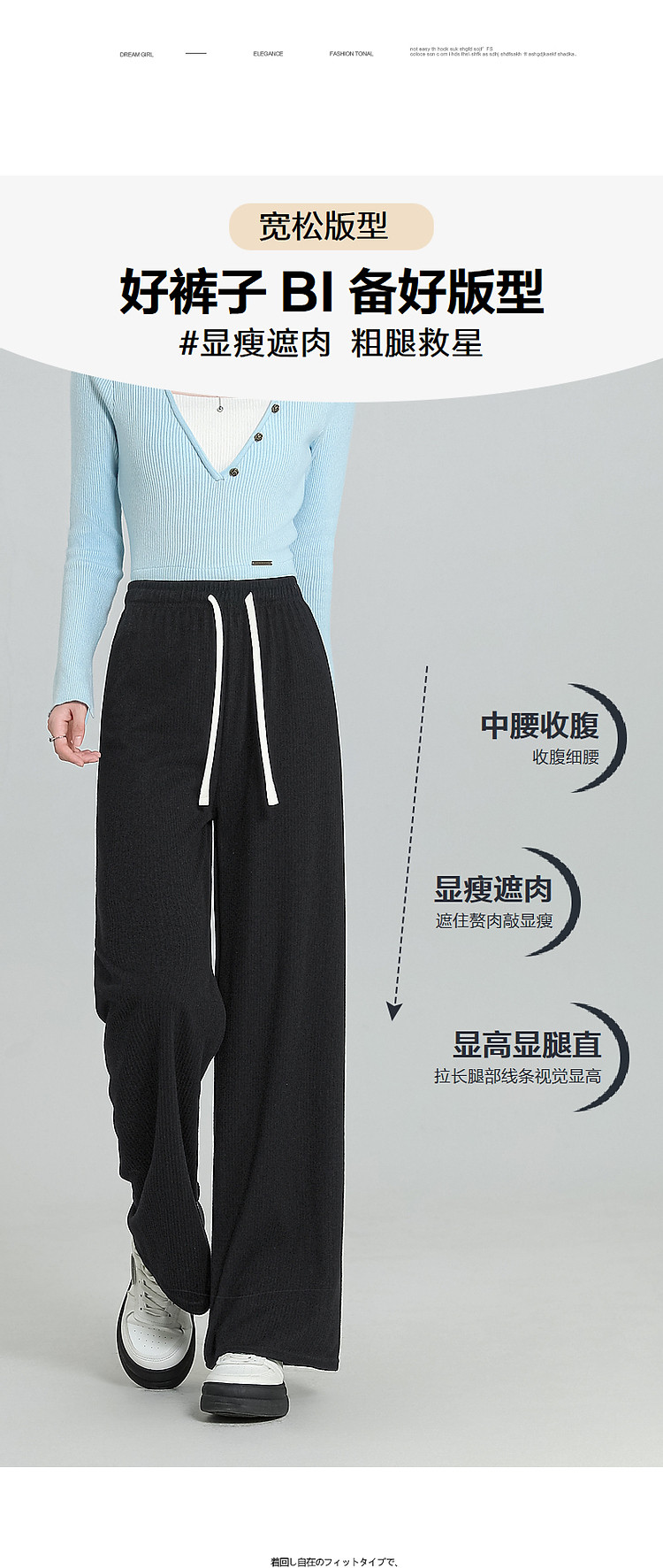 商品名称:【大长腿天花板】秋松紧腰舒适长裤裤弹力女裤直筒宽松休闲裤子女 443585