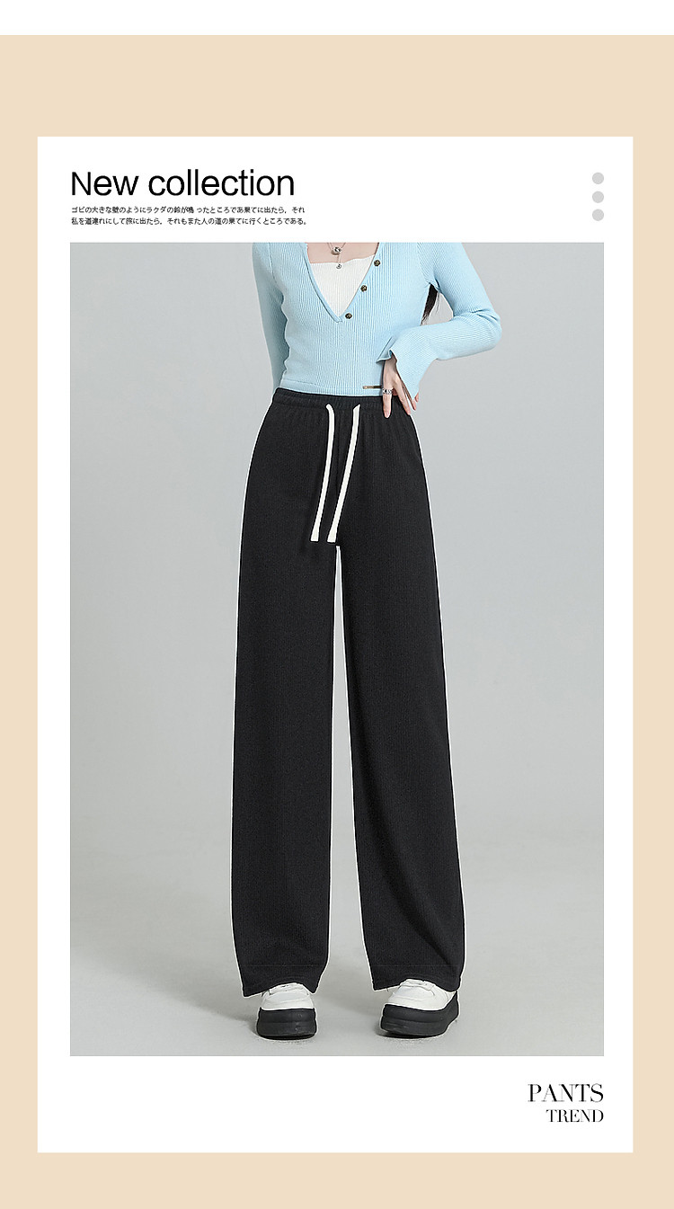 【大长腿天花板】秋松紧腰舒适长裤裤弹力女裤直筒宽松休闲裤子女 443585
