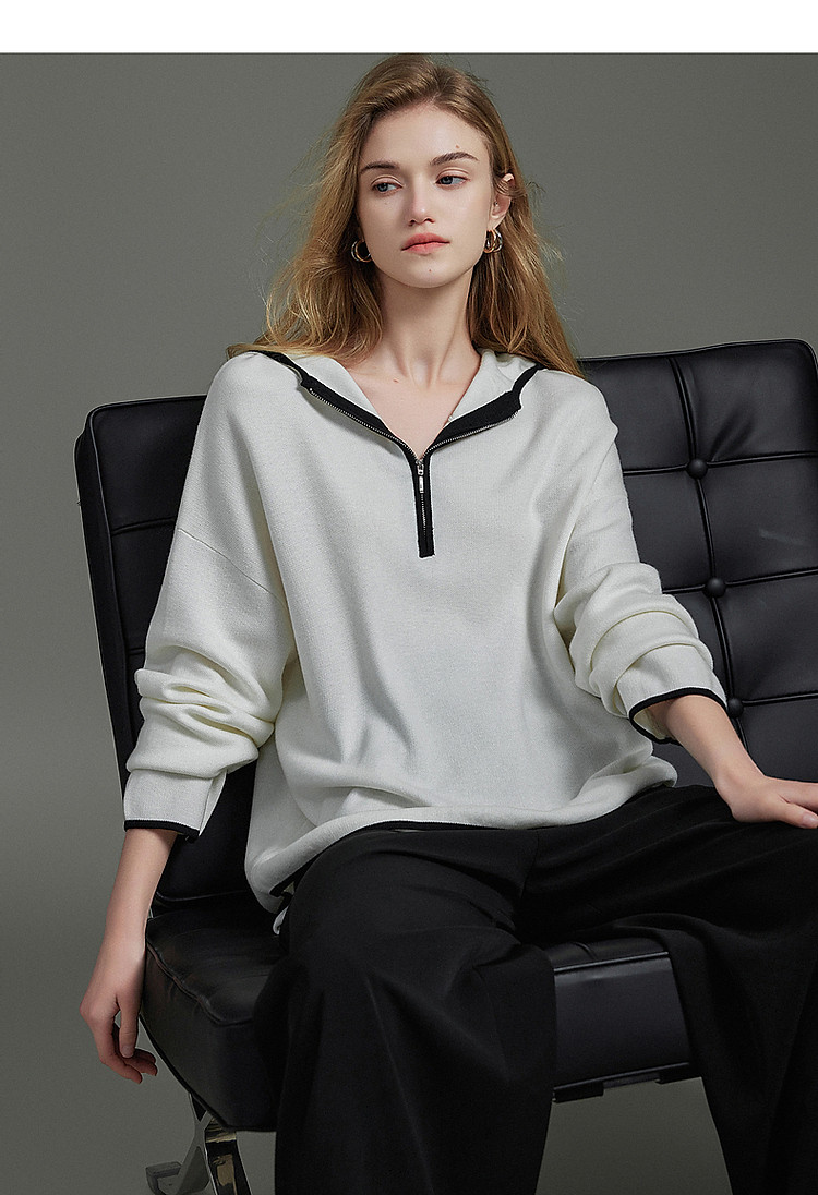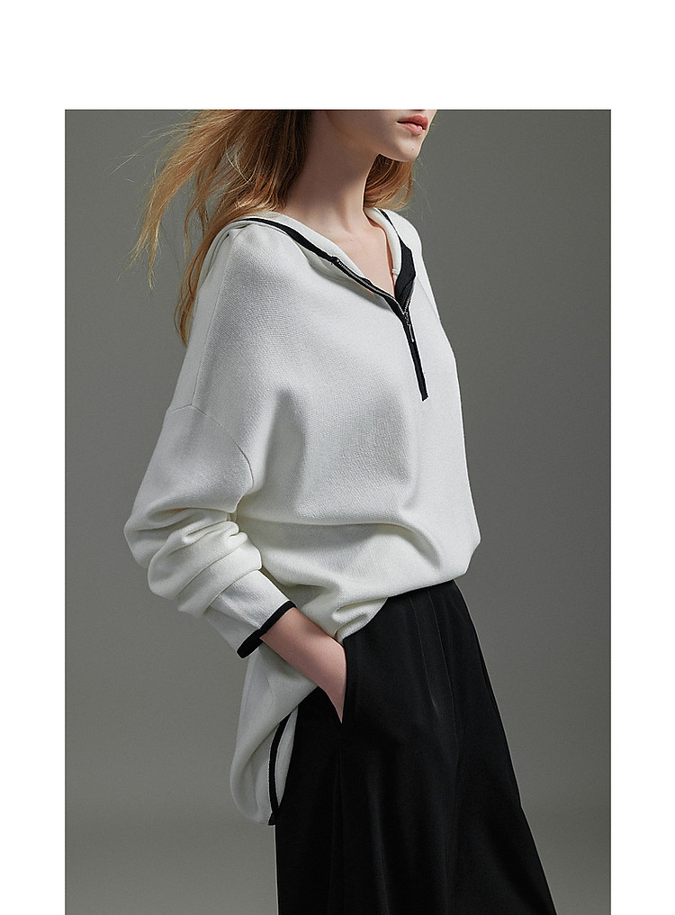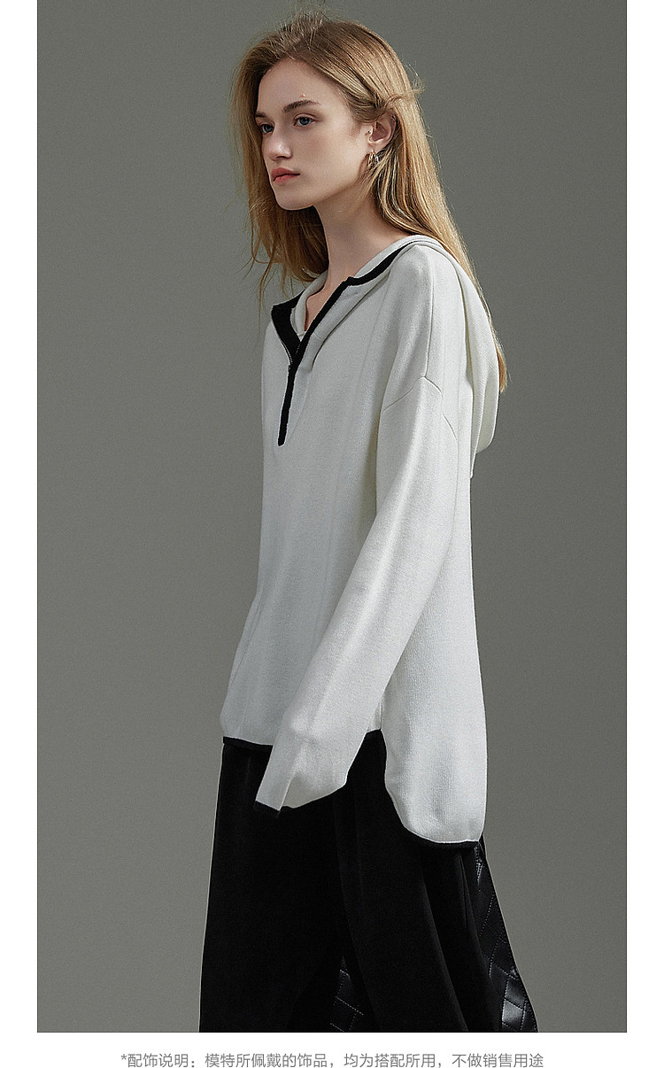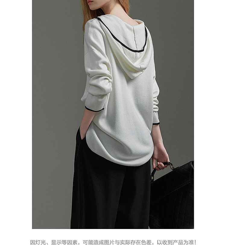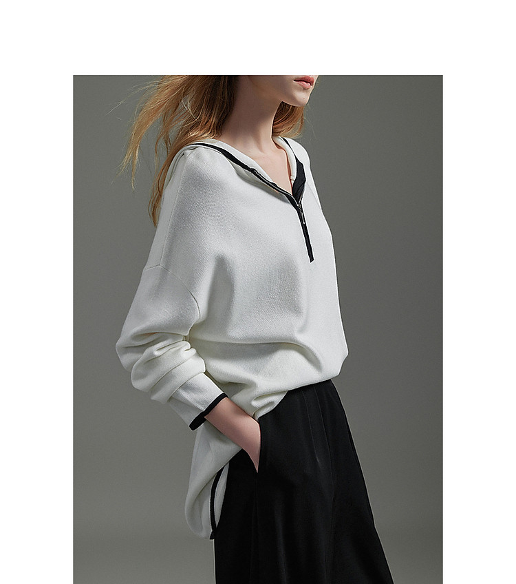 商品名称:【向云端】春秋简约风连帽通勤撞色拉链线衫藏肉针织衫女上衣 969153