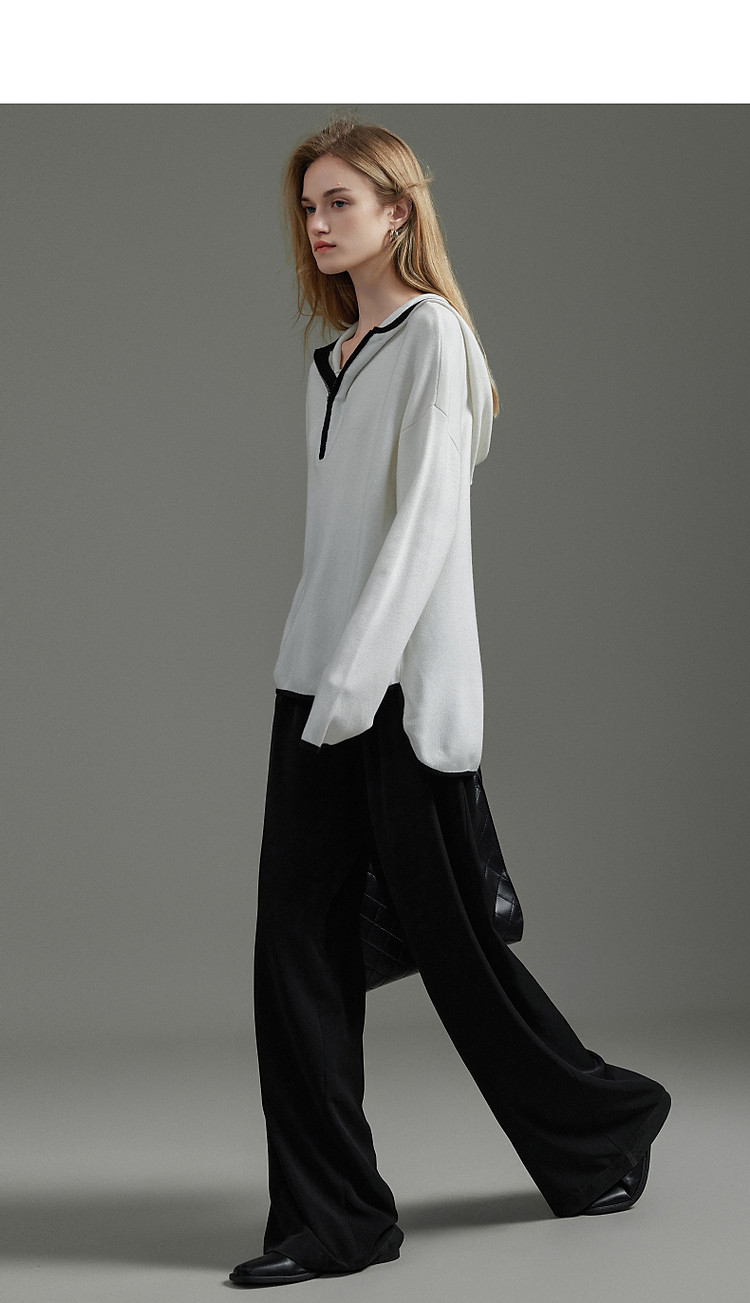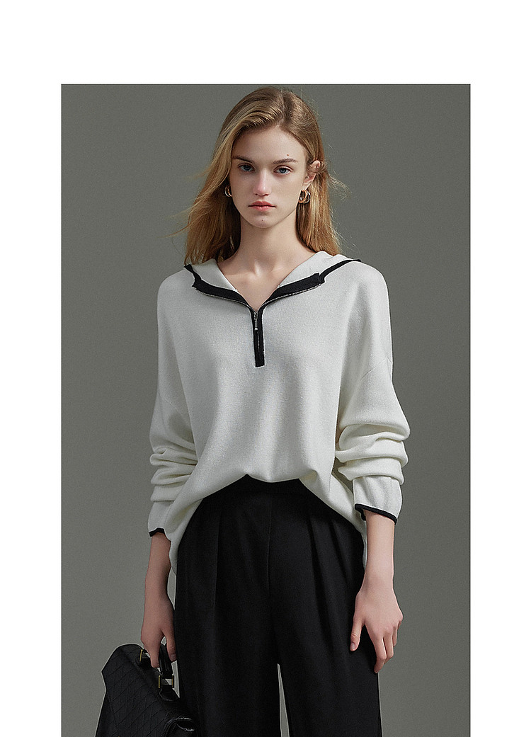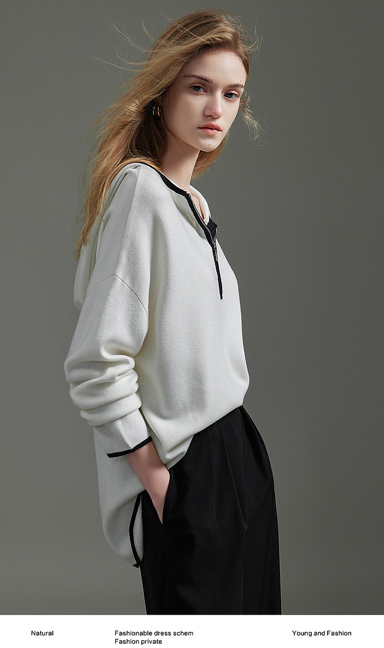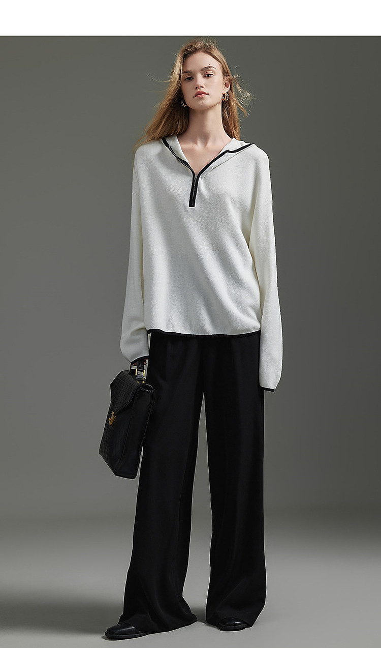 商品名称:【向云端】春秋简约风连帽通勤撞色拉链线衫藏肉针织衫女上衣 969153