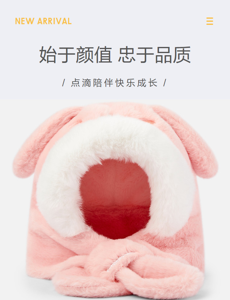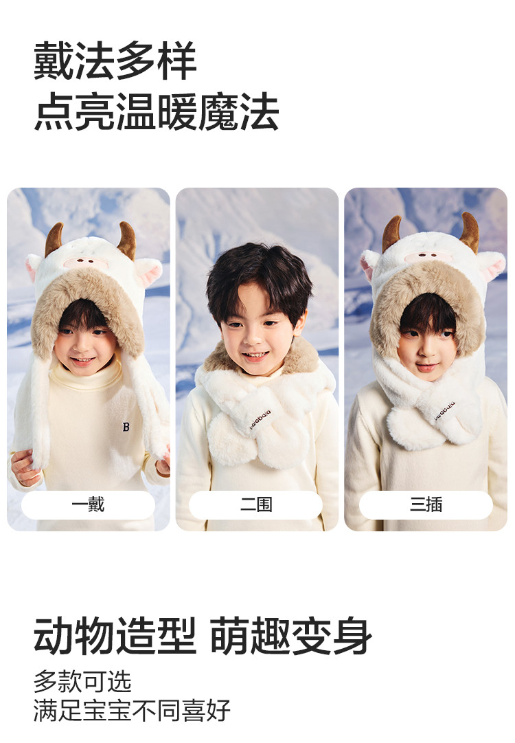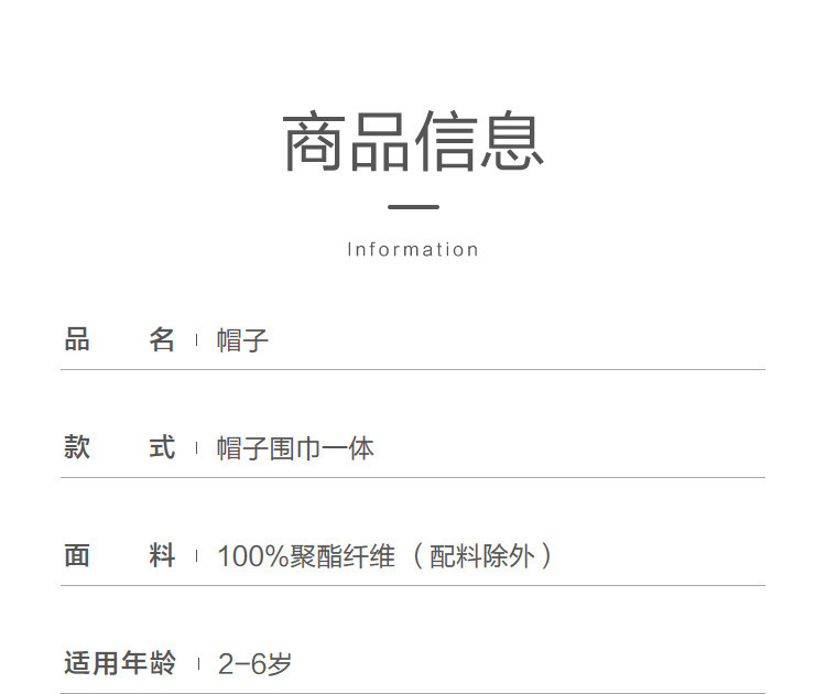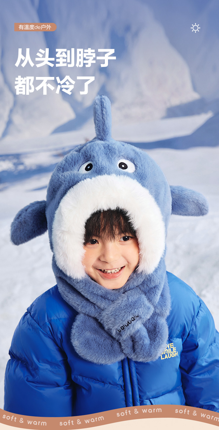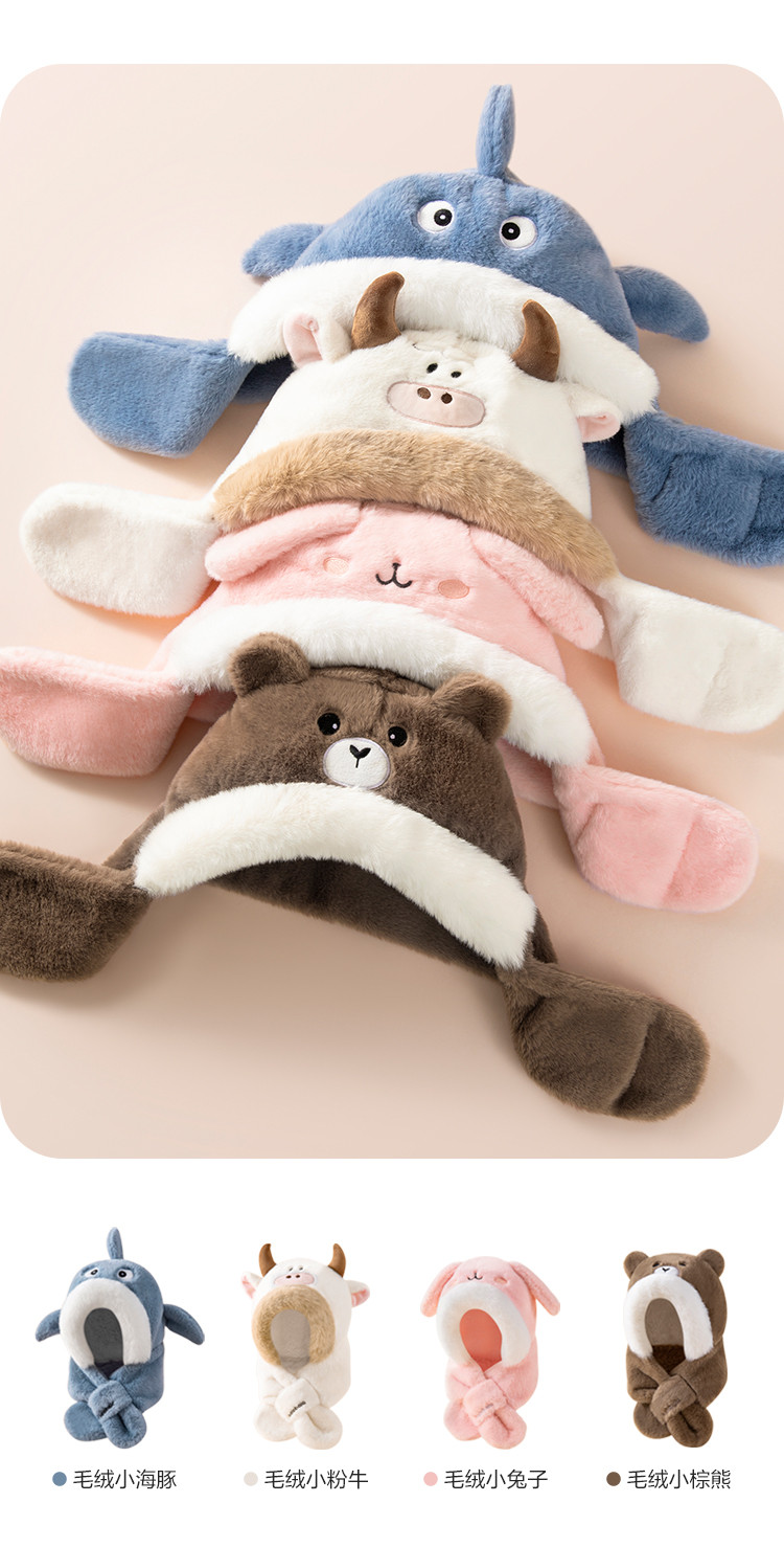 商品名称:儿童帽子围巾一体男童女童保暖厚实舒适温暖小学生冬季萌趣可爱 329285