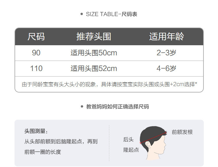 110cm(适用头围52cm,4-6岁)