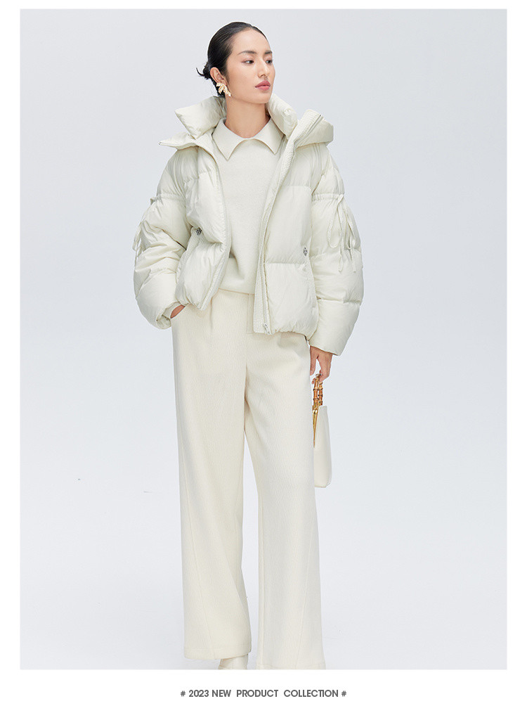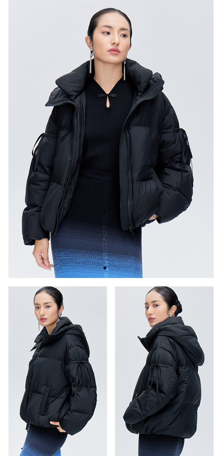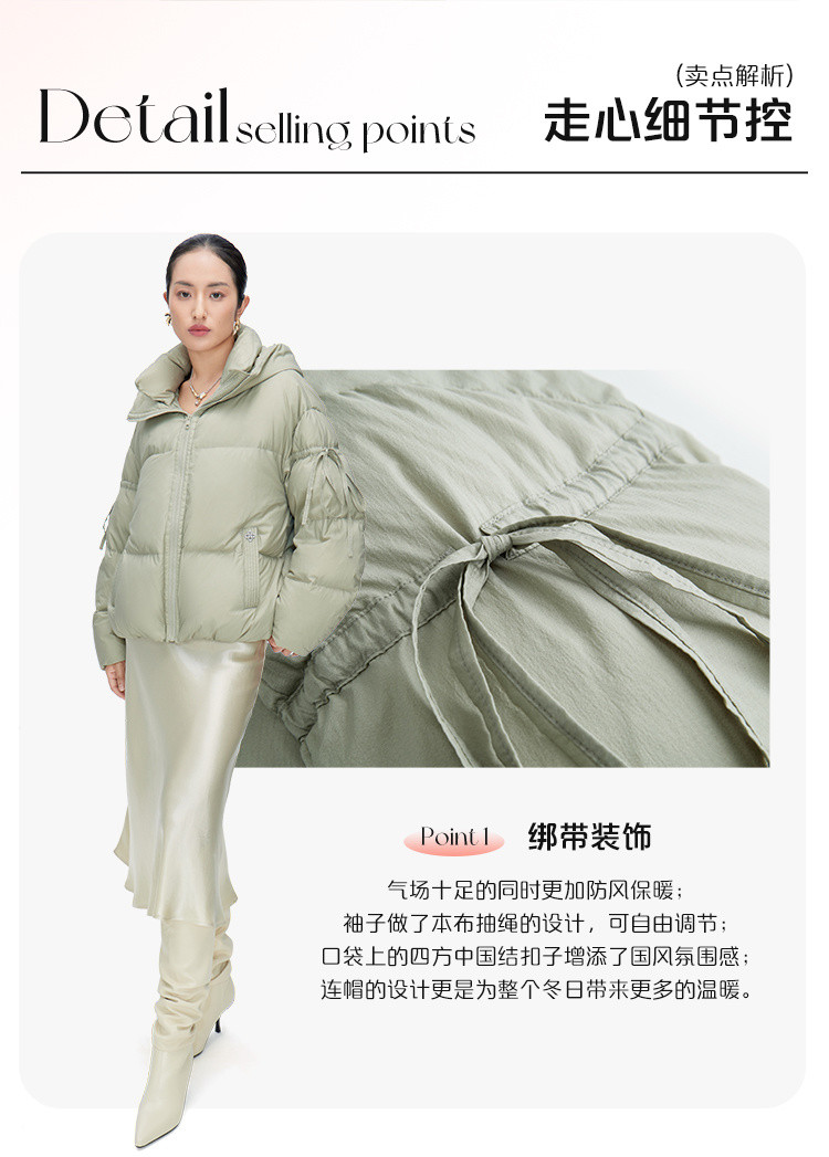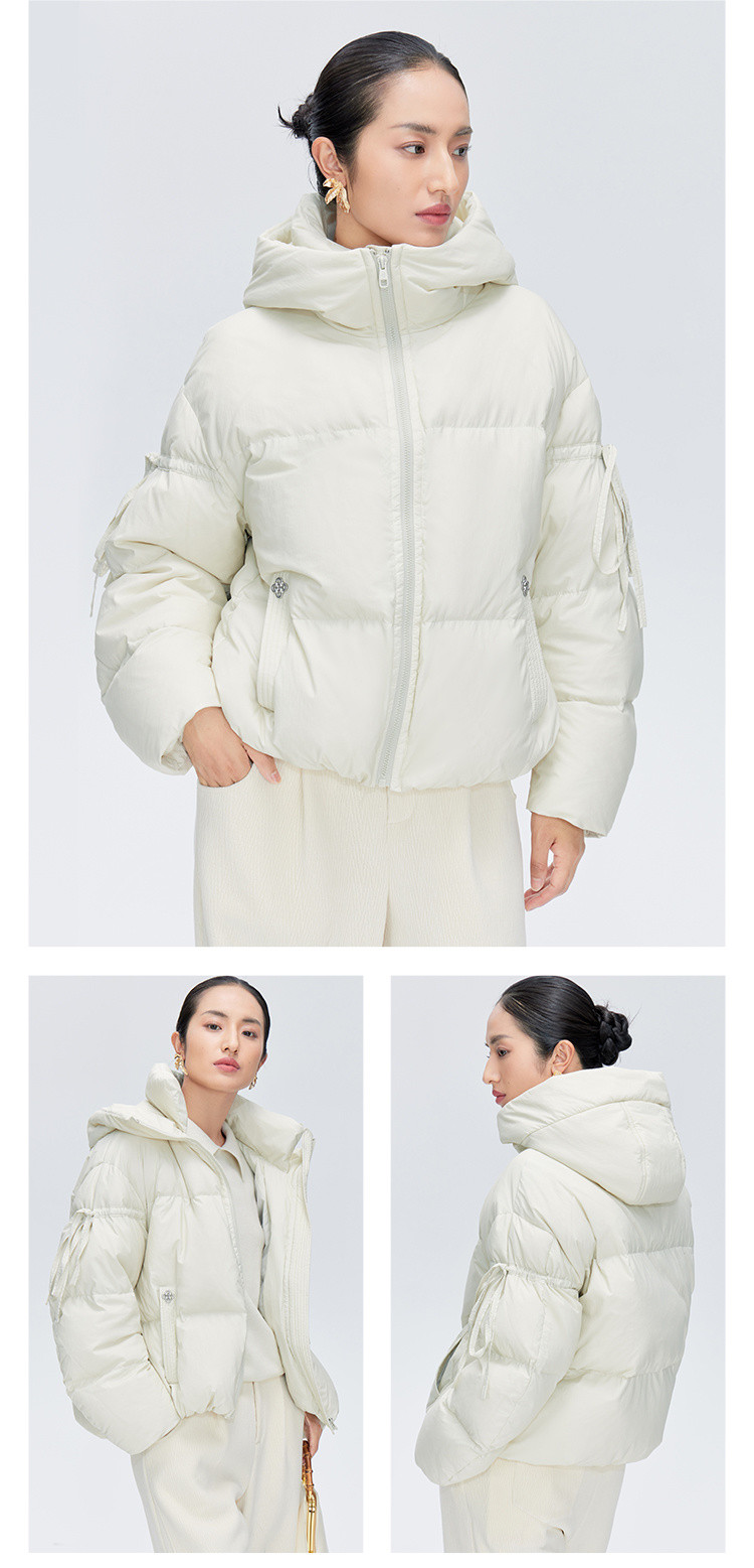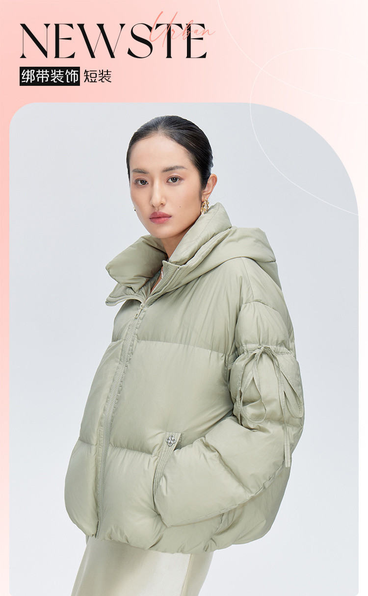 商品名称:【商场同款】时尚绑带装饰短款鸭绒羽绒服女保暖连帽宽松外套女 410262