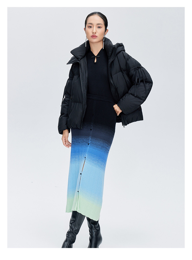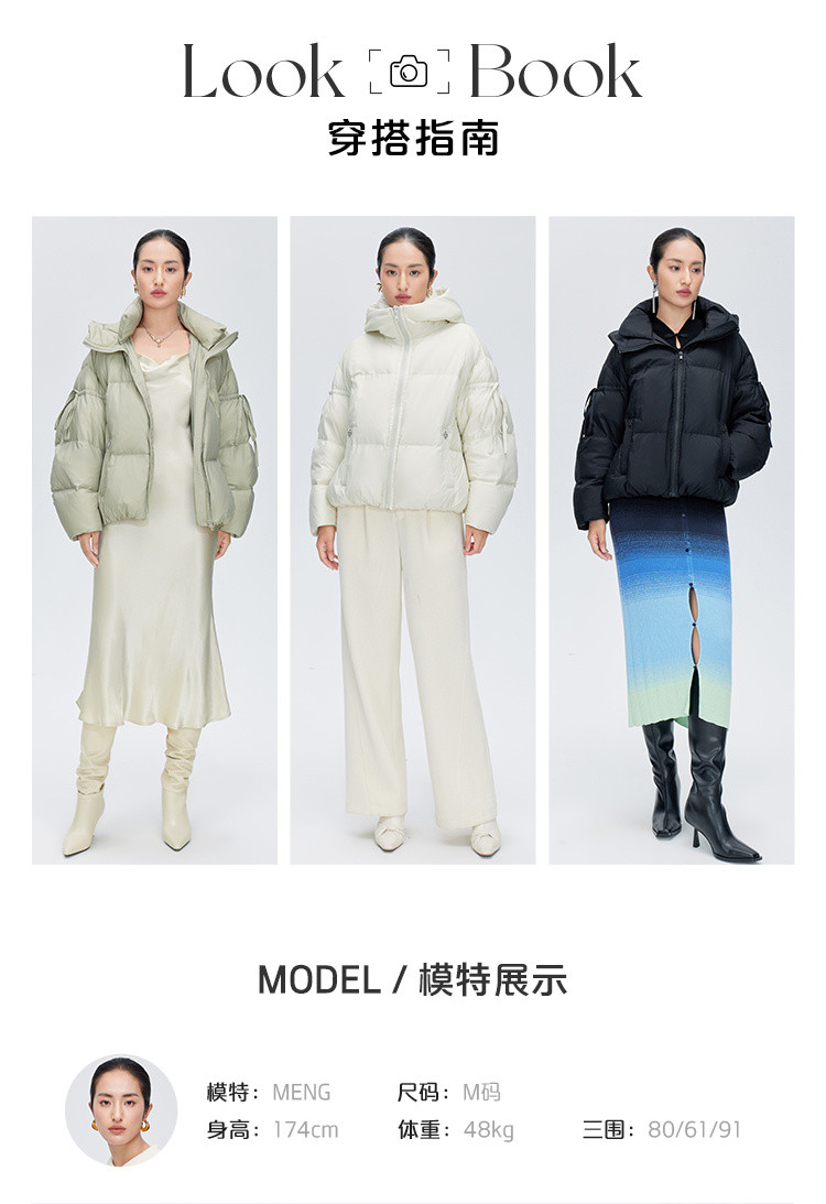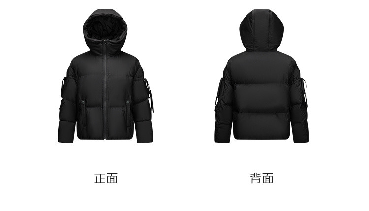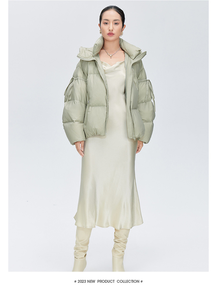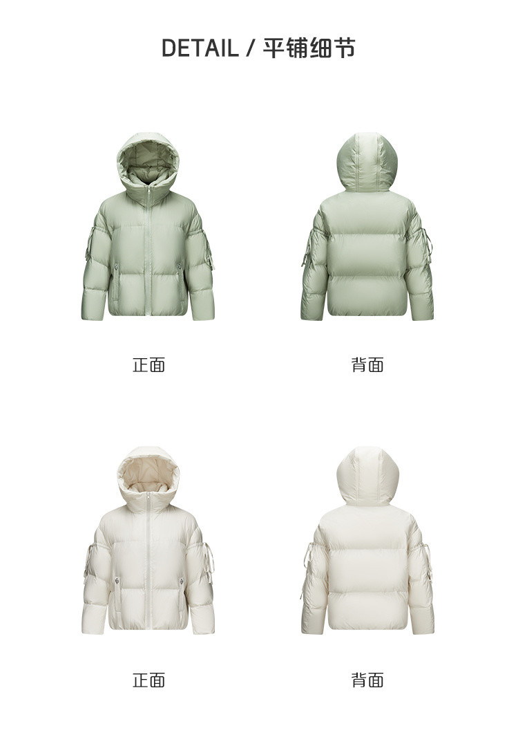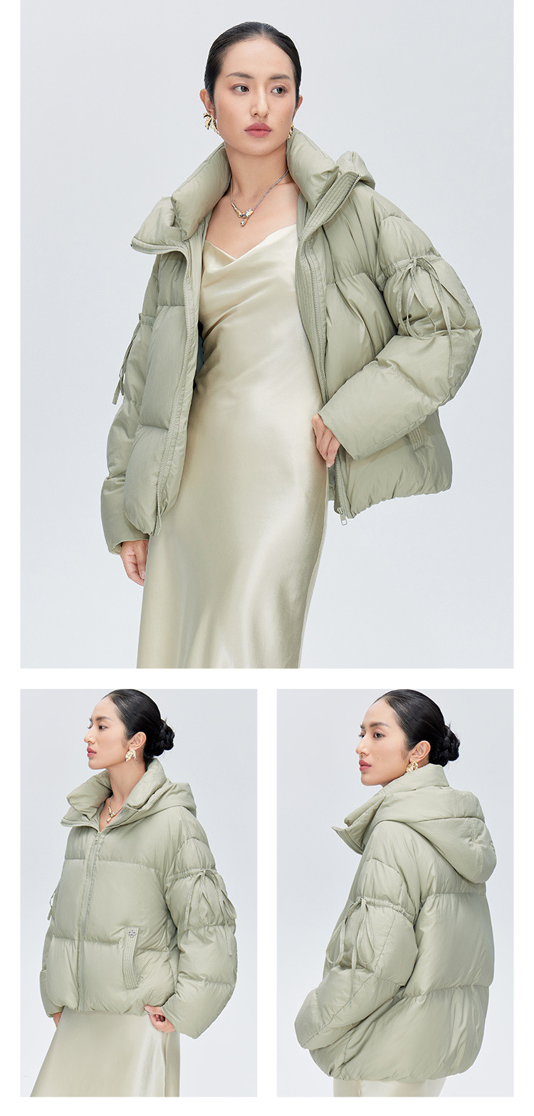 商品名称:【商场同款】时尚绑带装饰短款鸭绒羽绒服女保暖连帽宽松外套女 410262