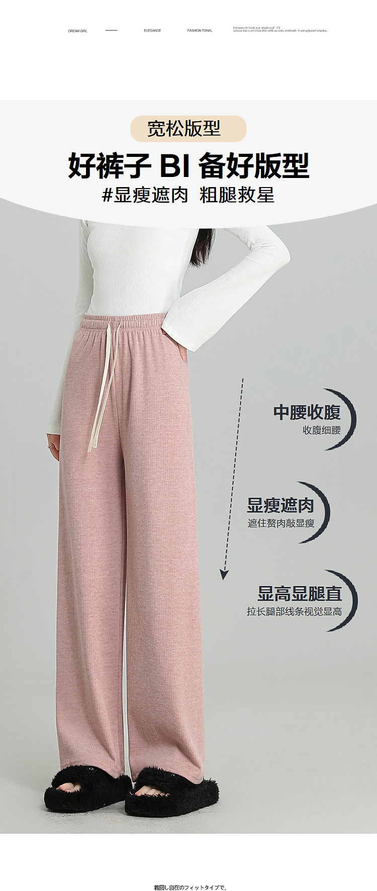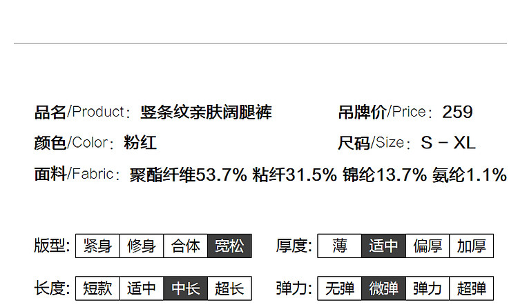 商品名称:【大长腿天花板】秋松紧腰舒适长裤裤弹力女裤直筒宽松休闲裤子女 365761