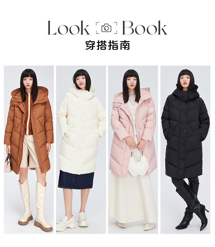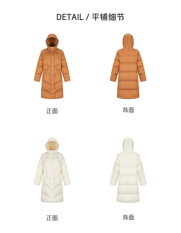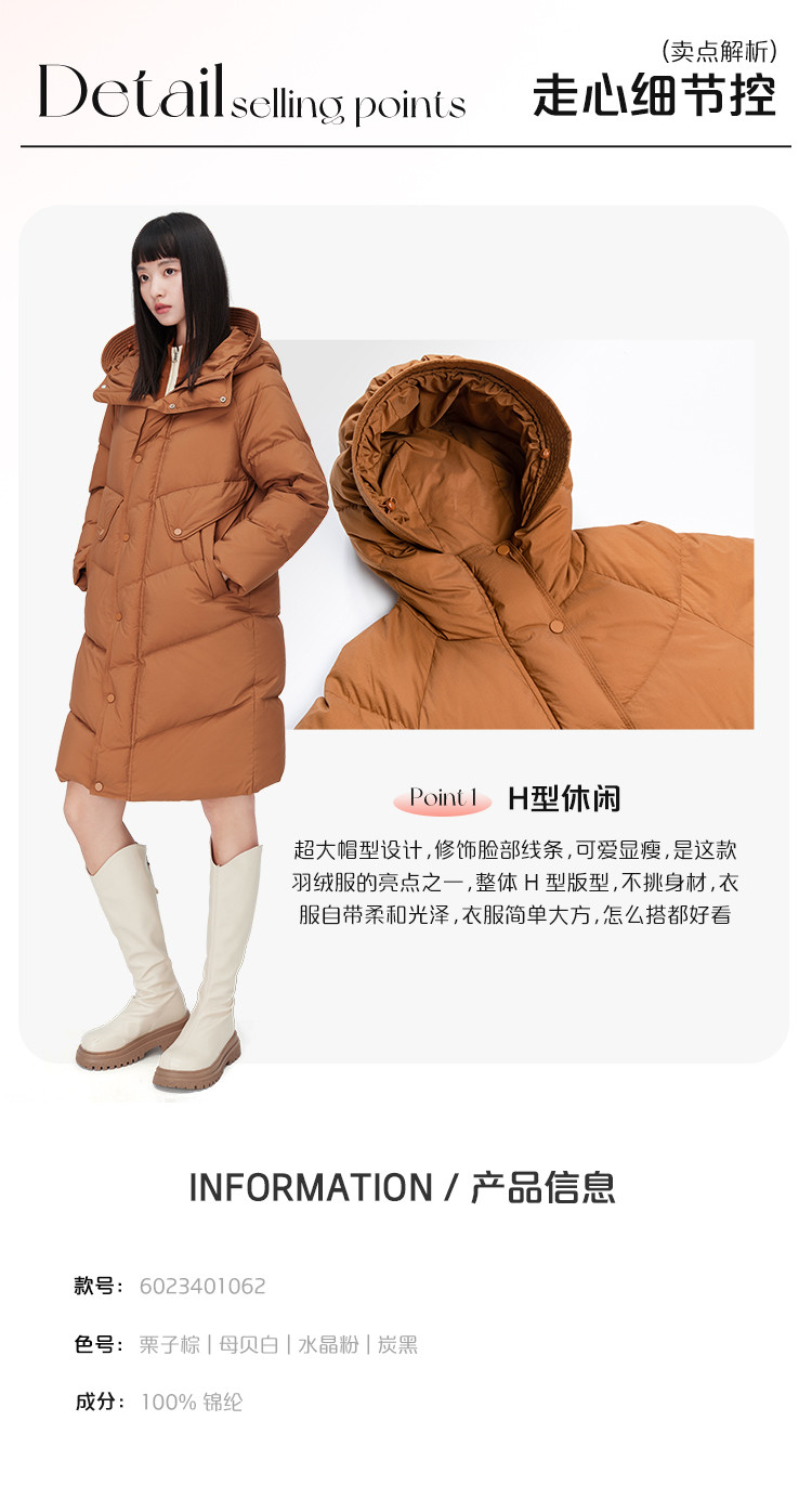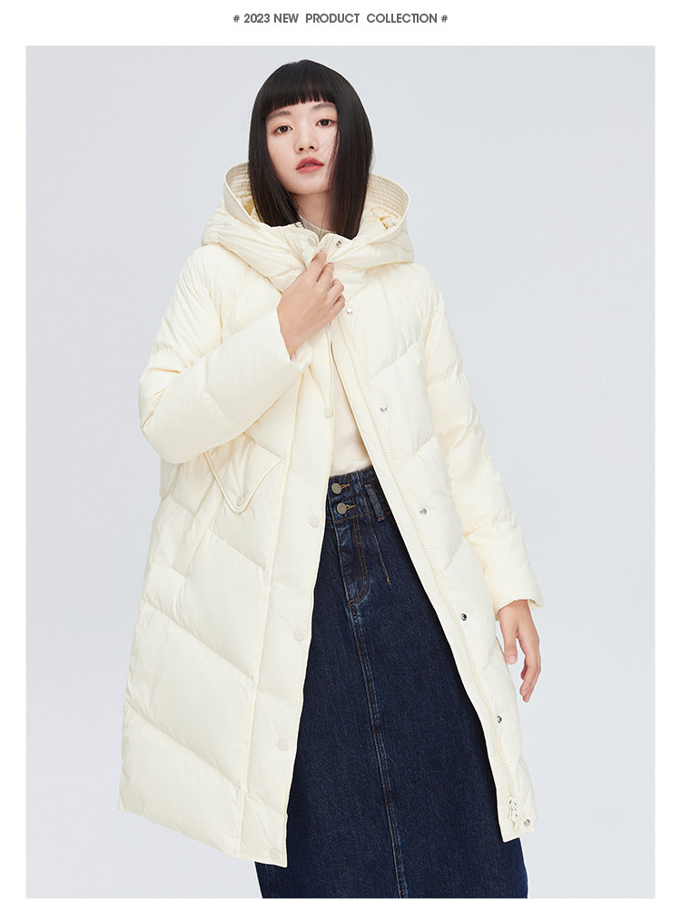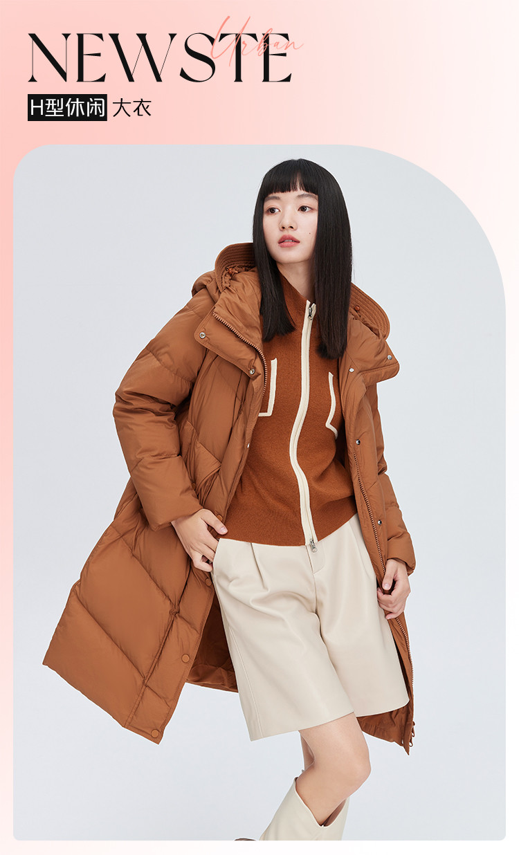商品名称:【商场同款】时尚休闲H型中长款羽绒服女御寒连帽鸭绒女式外套 835926