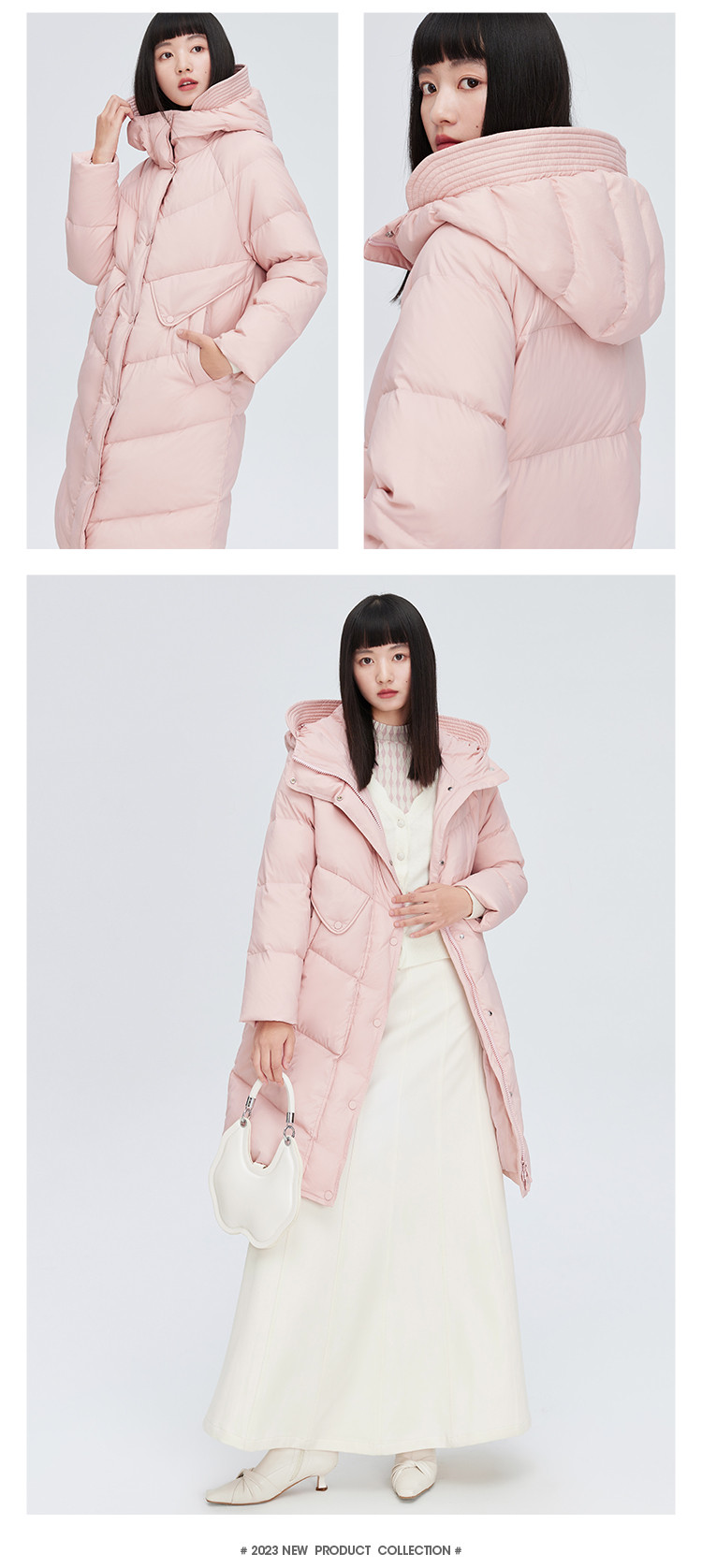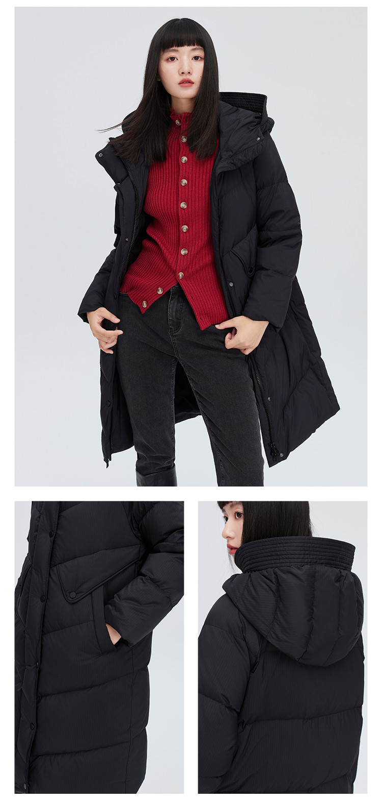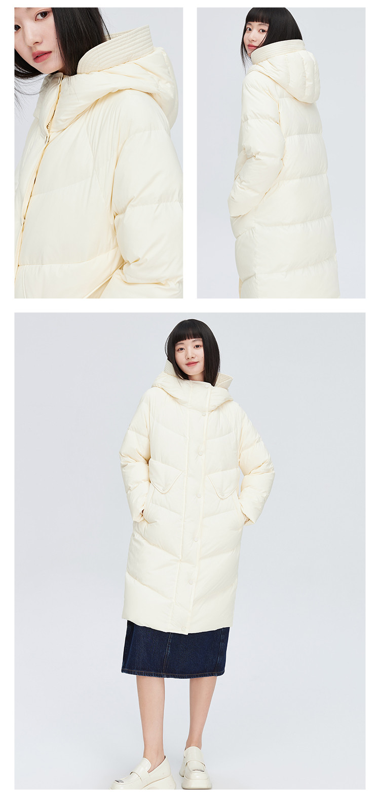 商品名称:【商场同款】时尚休闲H型中长款羽绒服女御寒连帽鸭绒女式外套 835926