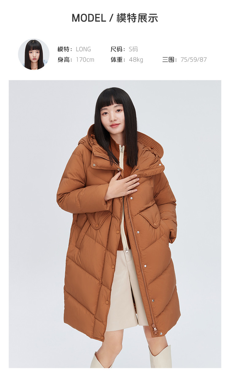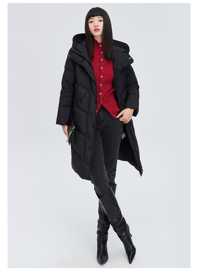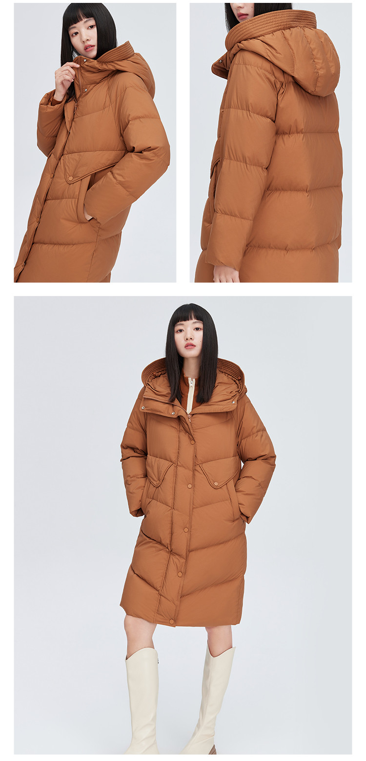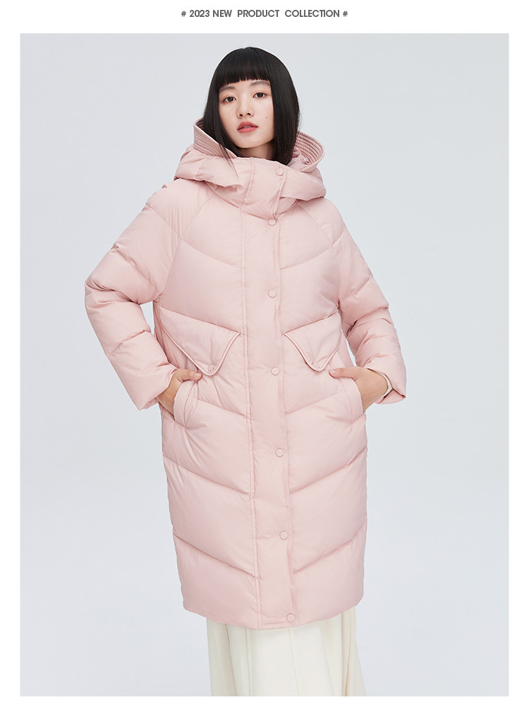 【商场同款】时尚休闲H型中长款羽绒服女御寒连帽鸭绒女式外套 835926