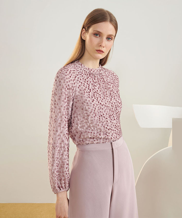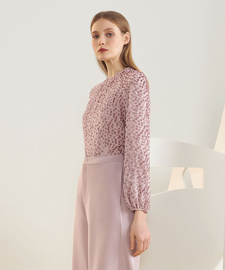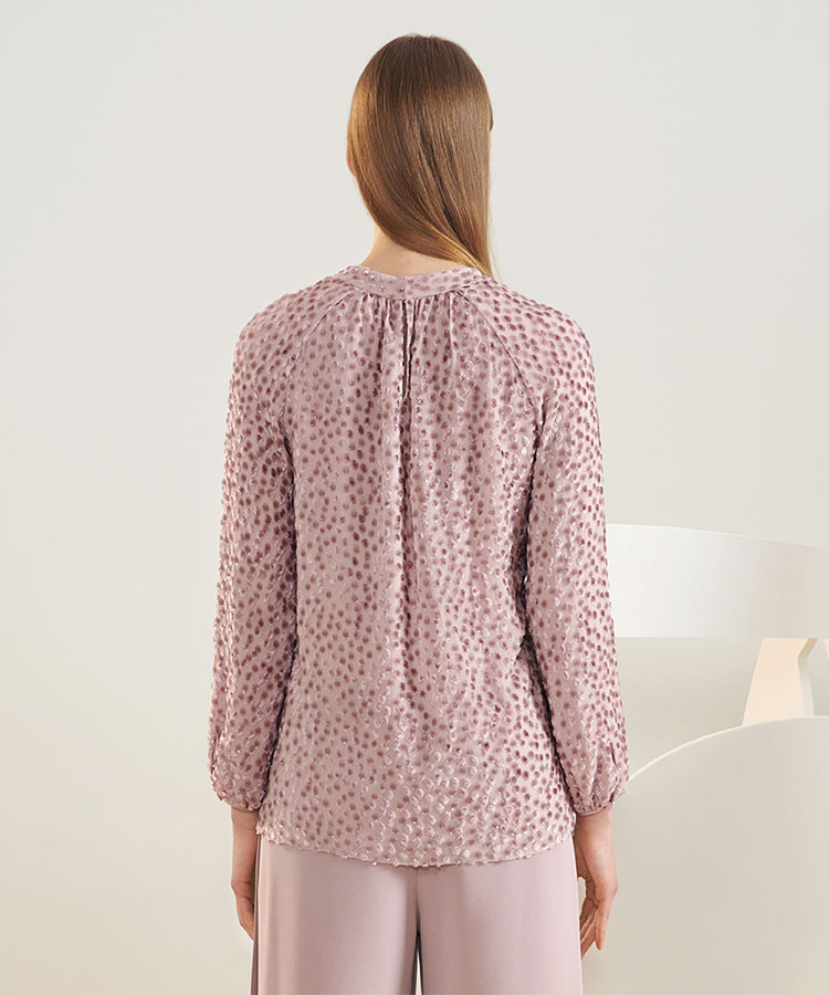商品名称:宝姿PORTS女装亮丝植绒真丝柔美精致宽松舒适华美慵懒上衣 809482
