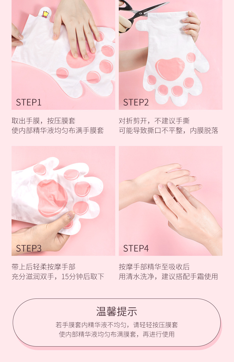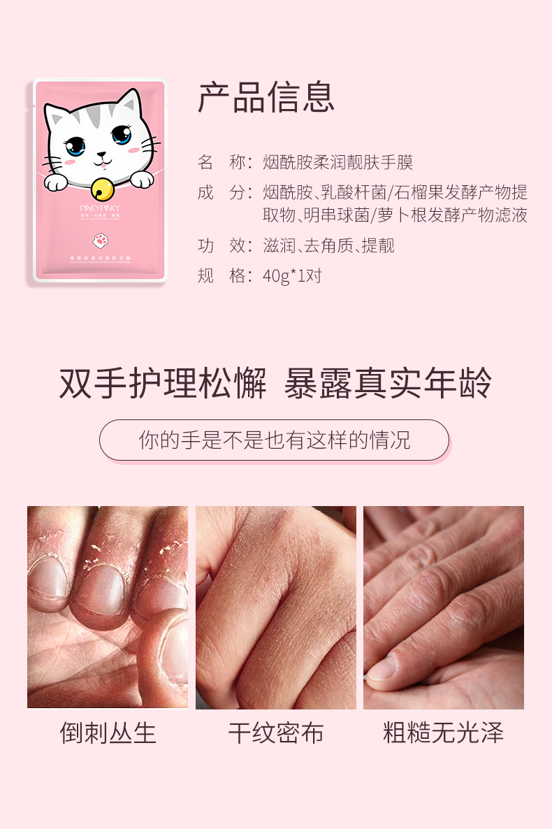 商品名称:缤肌 烟酰胺柔润靓肤猫爪手膜 40g/对/袋