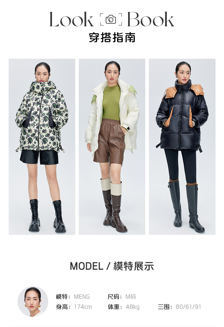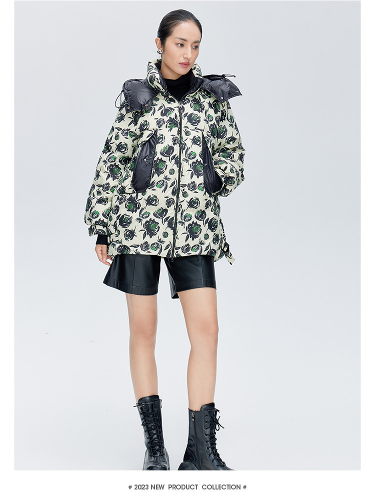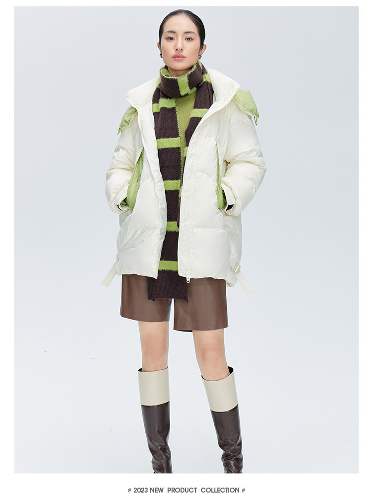 商场同款秋冬时尚御寒连帽羽绒服女口袋撞色保暖鸭绒服女式外套 217430