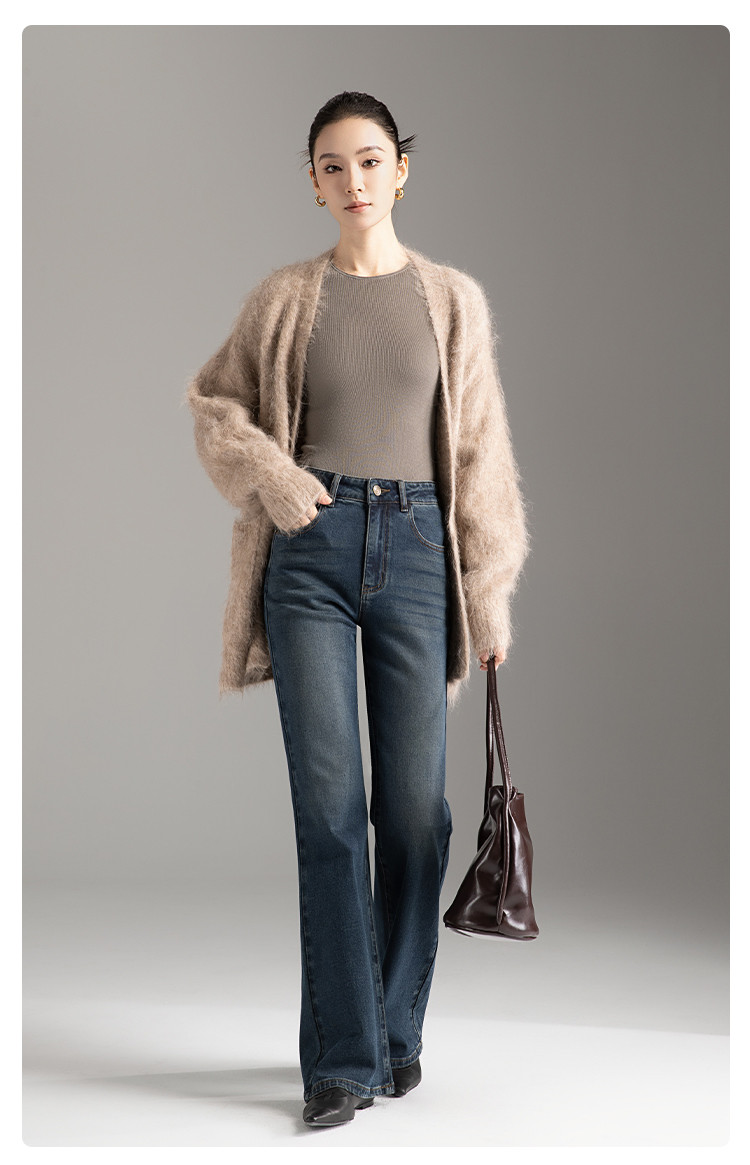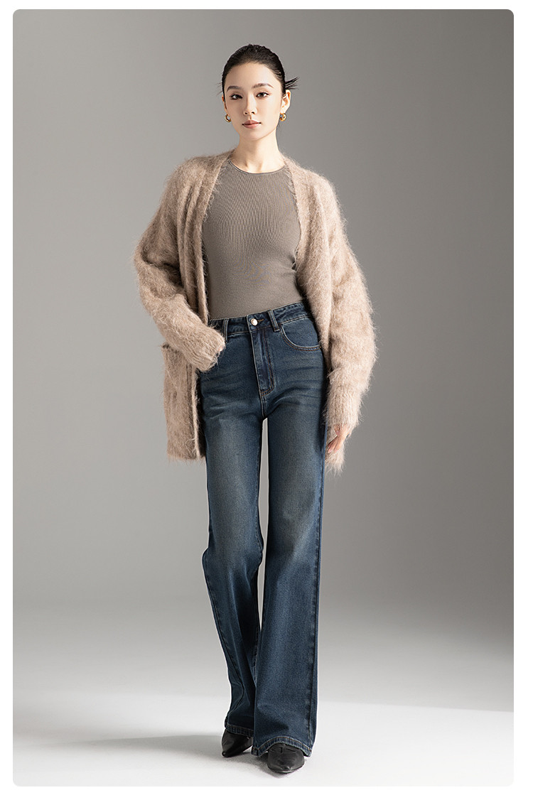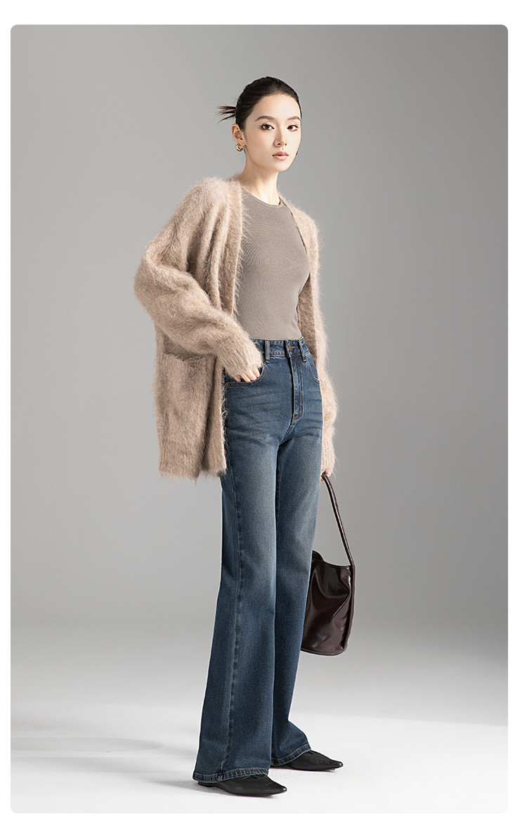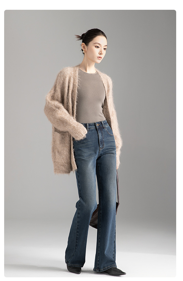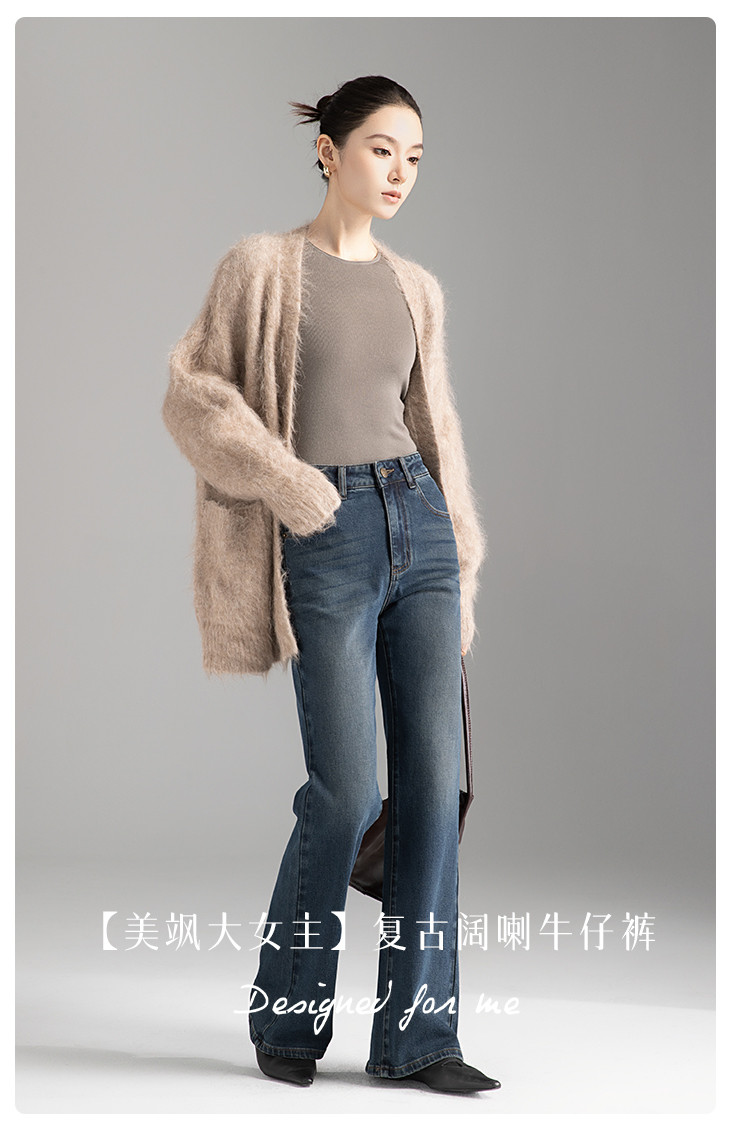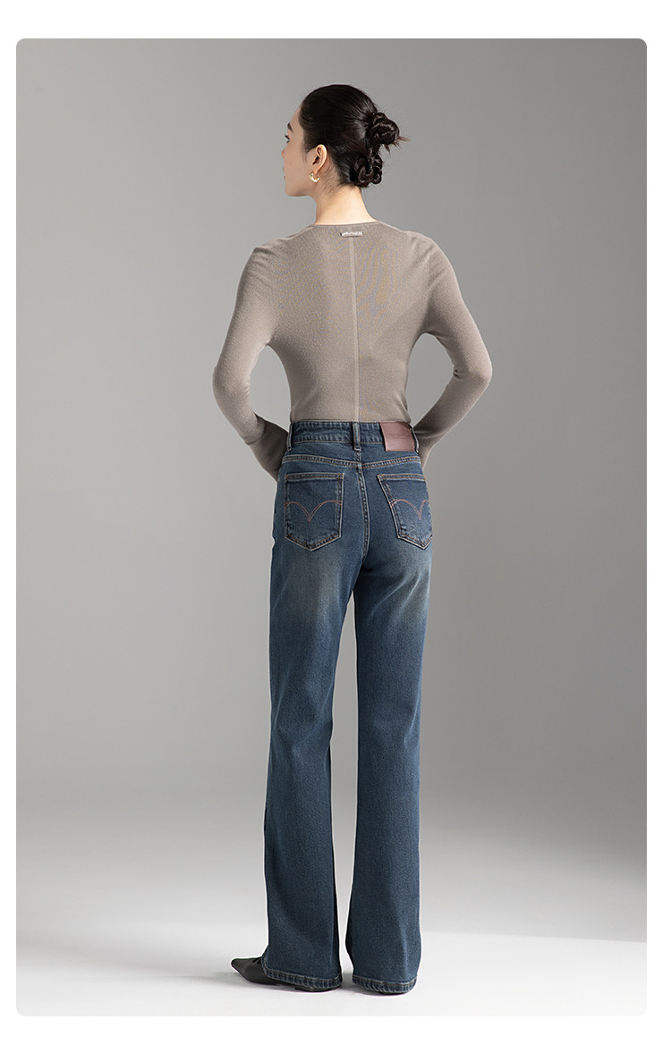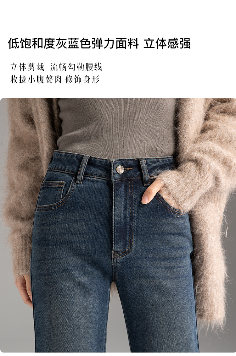 【裤乐之镜】牛仔阔喇裤女春秋款高腰显瘦弹力不贴微喇叭裤女 005825
