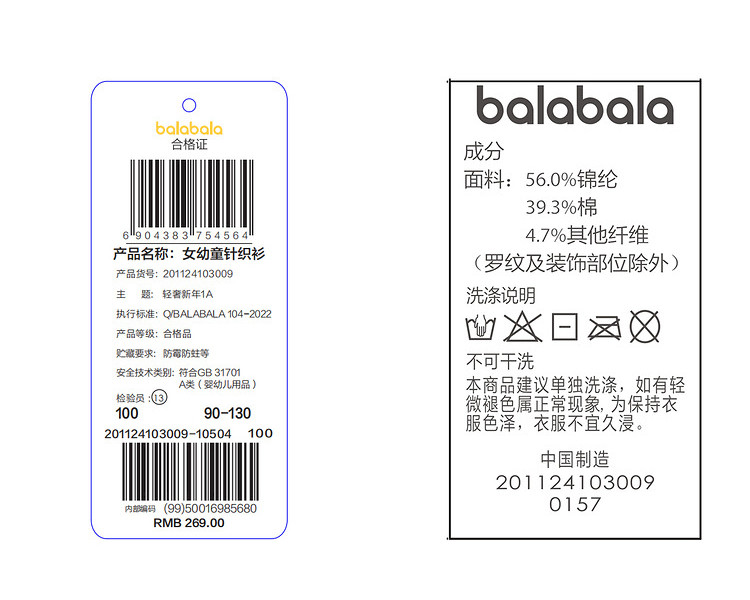 商品名称:巴拉巴拉女童毛衣洋气针织衫时尚套头衫甜美可爱春装 627141