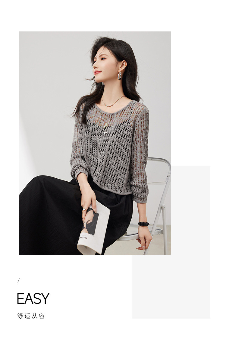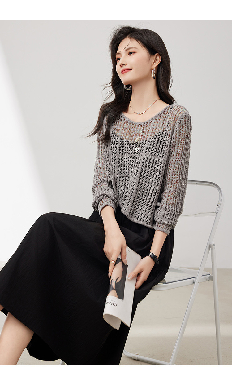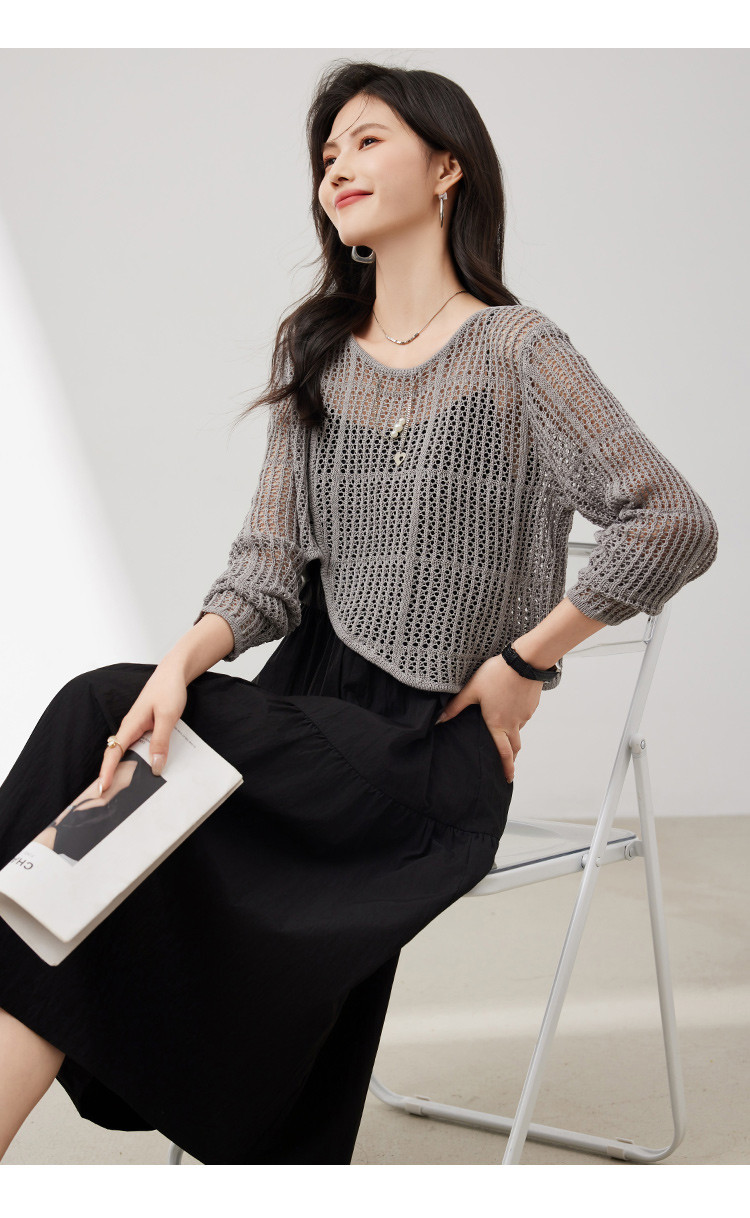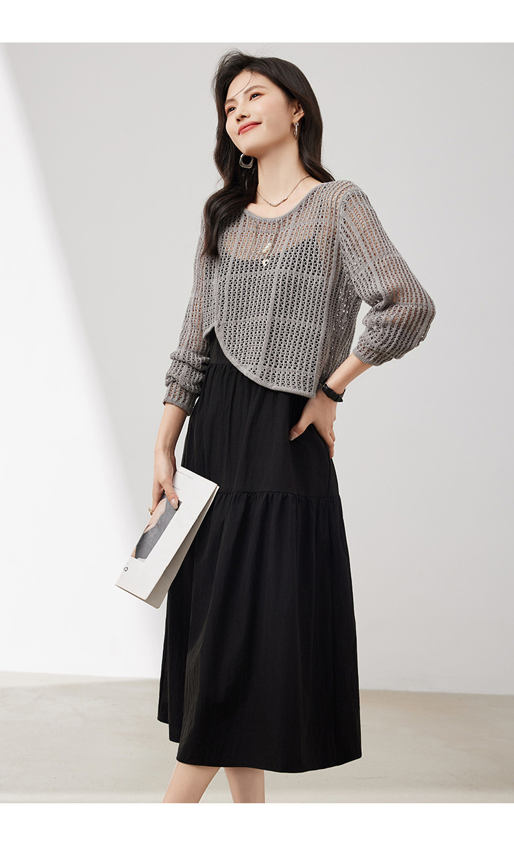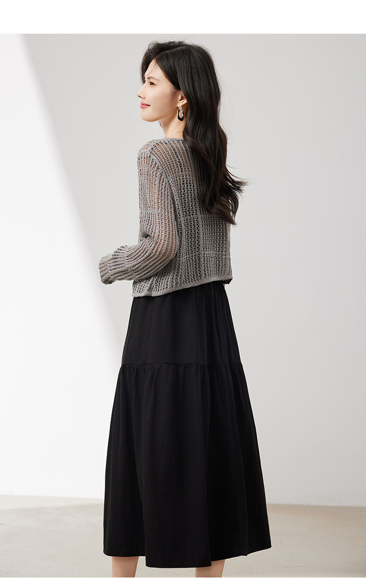 气质套装女2025春季新款时尚针织镂空衫搭吊带连衣裙两件套女 648024