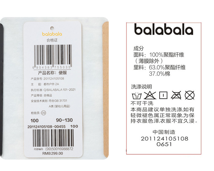 商品名称:巴拉巴拉童装男童外套休闲宽松连帽春装潮流创意春装 737605