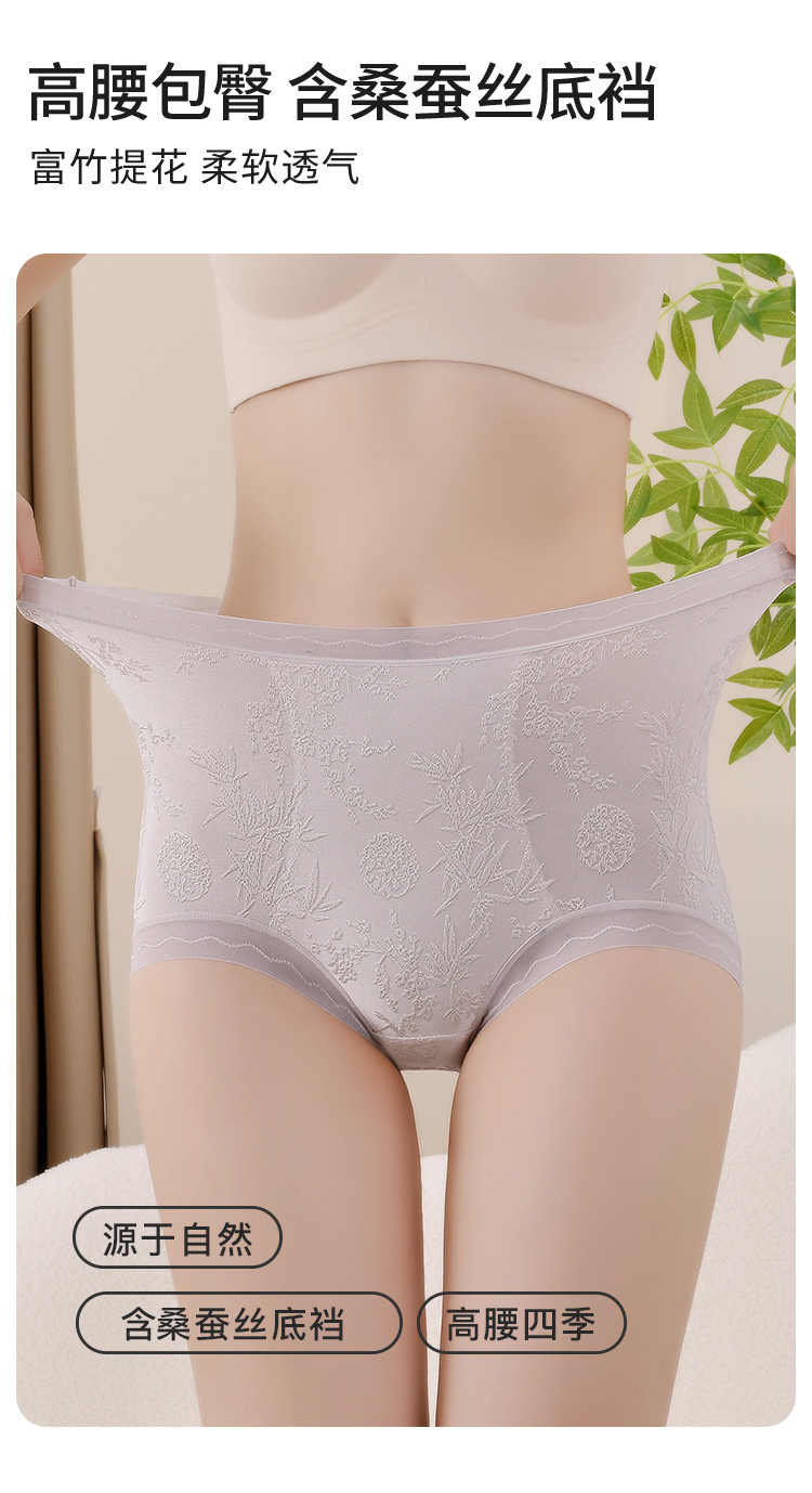 商品名称:【收小肚子轻盈提花】3条装高弹含桑蚕丝底裆女士内裤女夏季薄款 903646