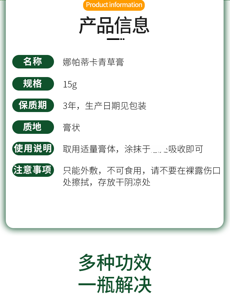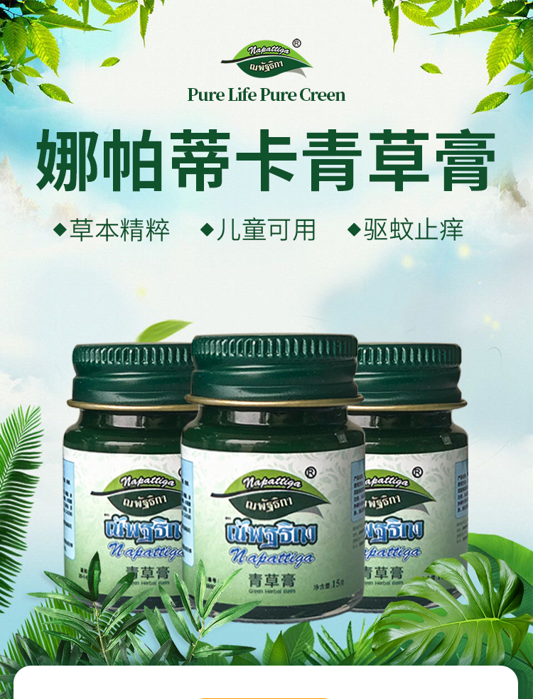 商品名称:泰国Napattiga娜帕蒂卡 青草膏 15g*3罐