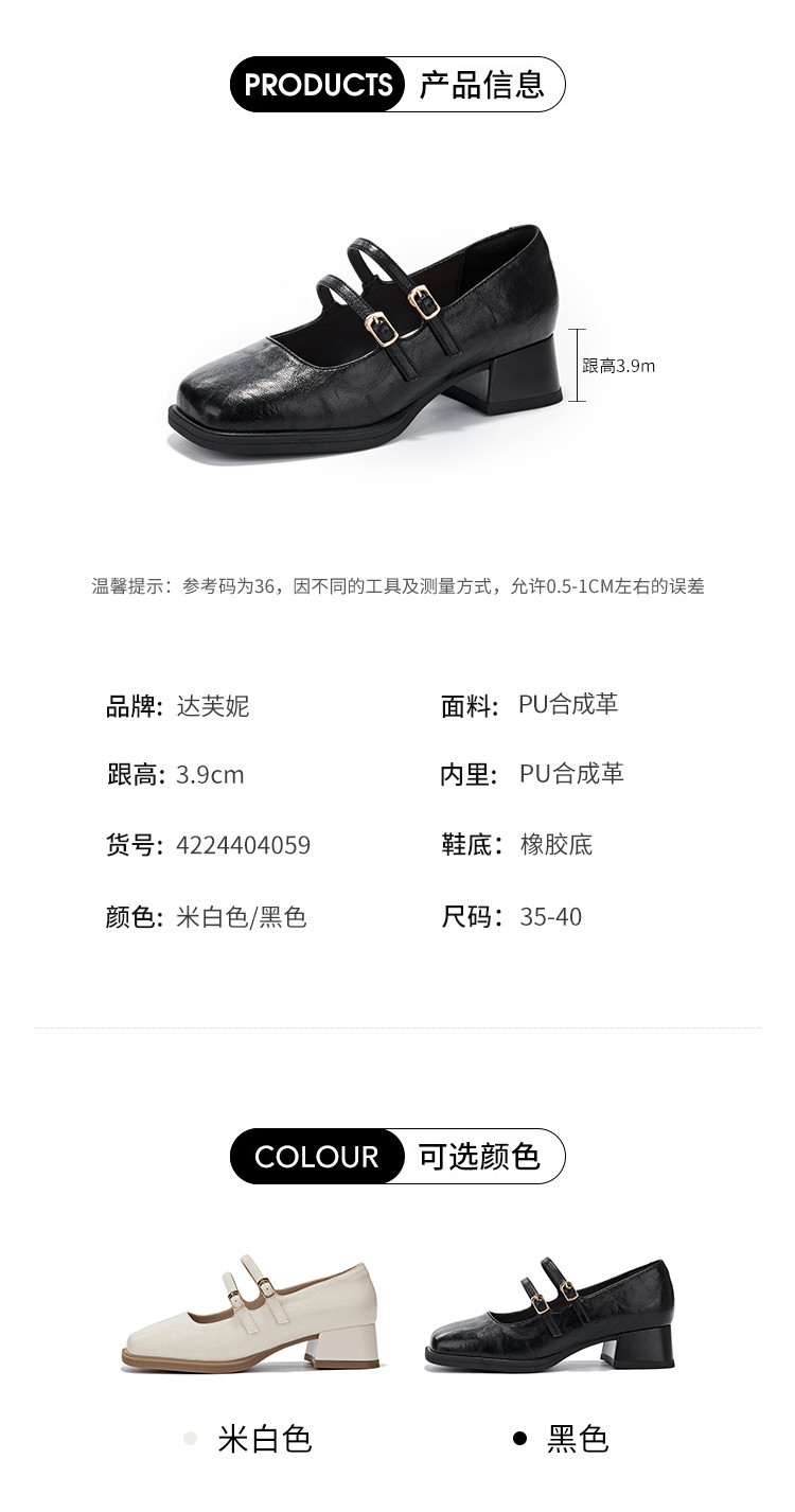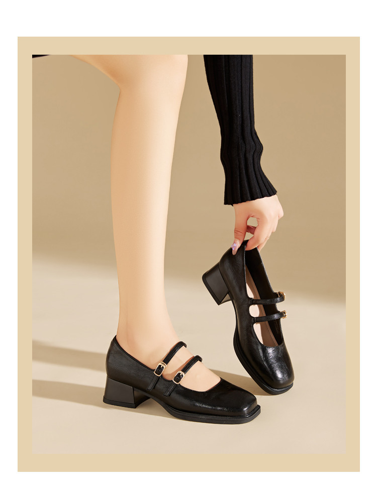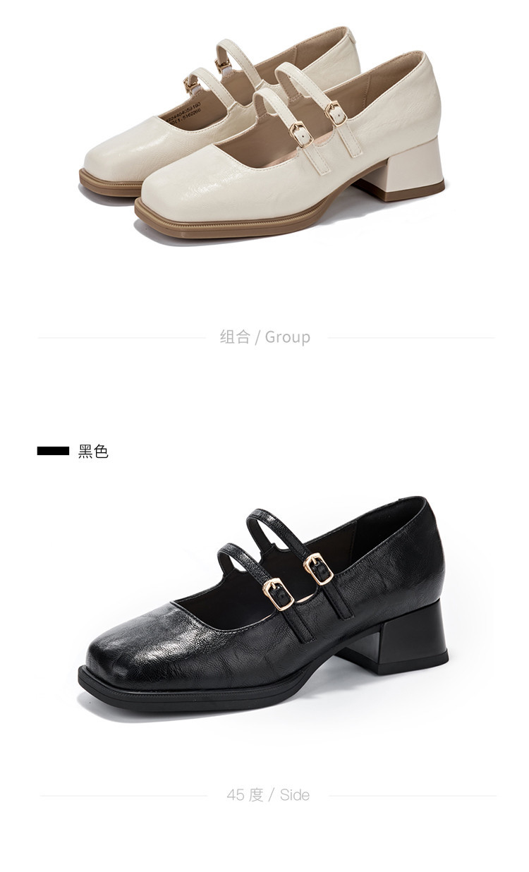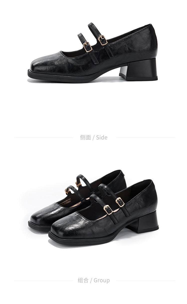 商品名称:【双带搭扣】优雅一字带小皮鞋女粗跟浅口单鞋女款玛丽珍鞋单鞋女 051095
