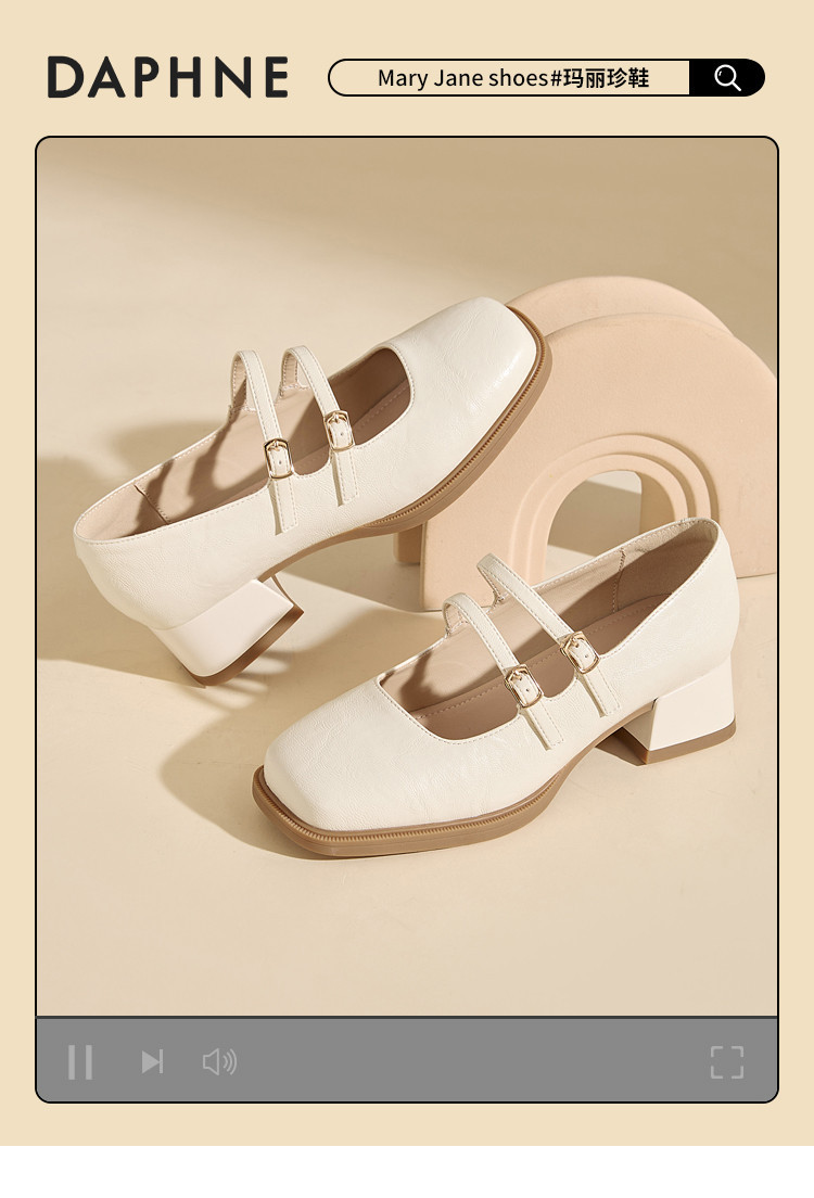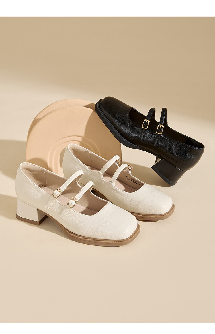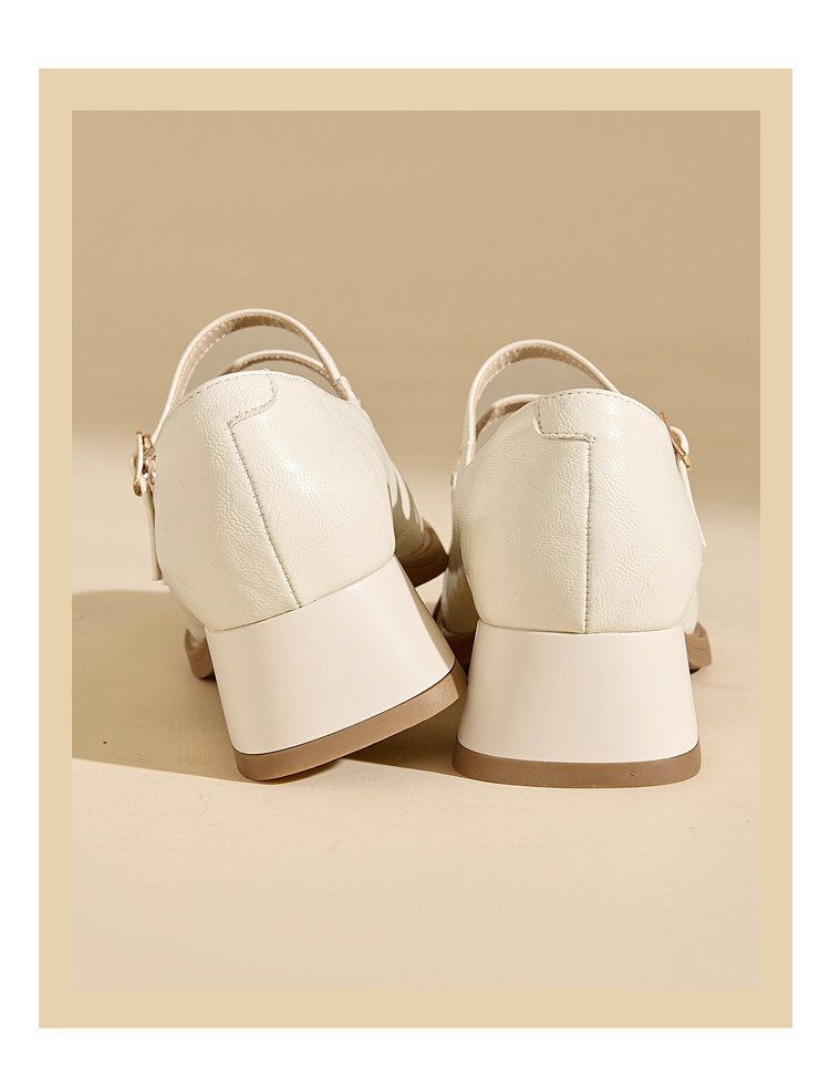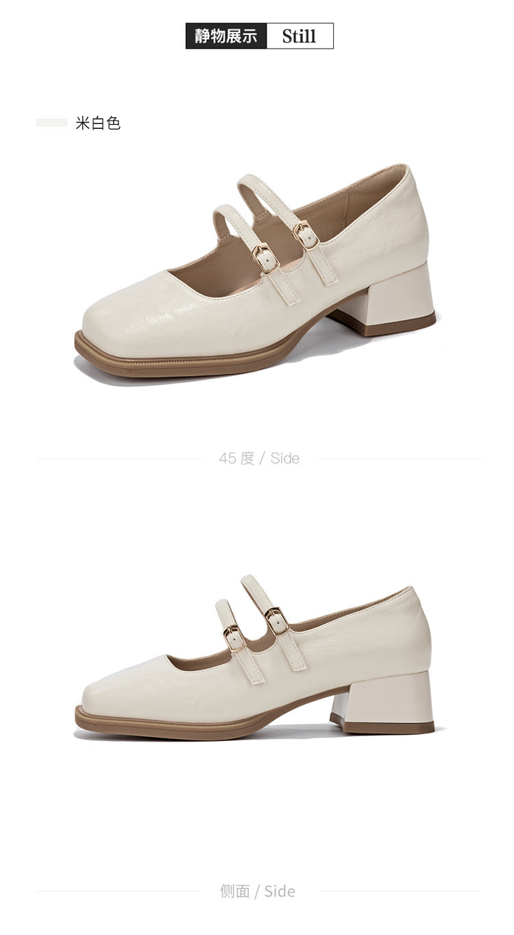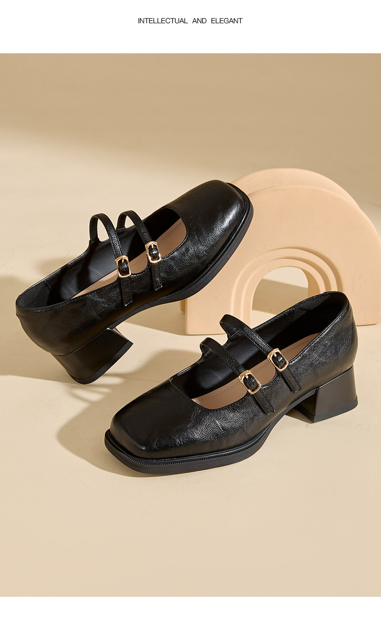商品名称:【双带搭扣】优雅一字带小皮鞋女粗跟浅口单鞋女款玛丽珍鞋单鞋女 051095