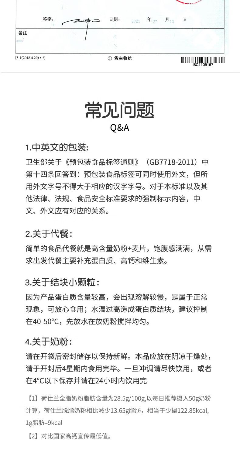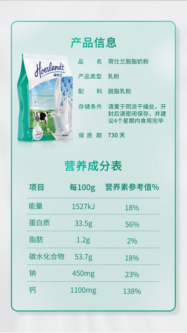 商品名称:荷仕兰 新西兰原装进口高钙脱脂成人奶粉 800g袋装 女士