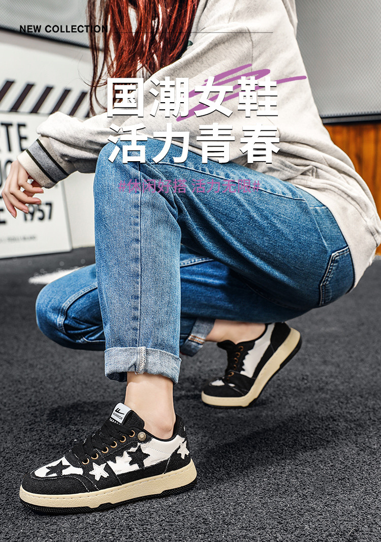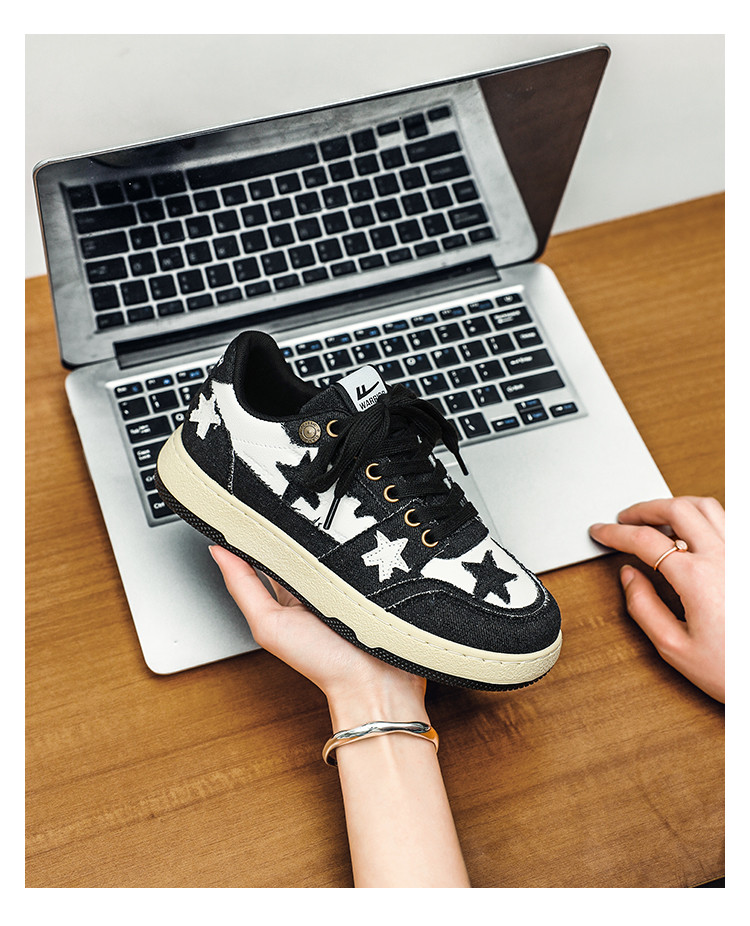 商品名称:回力春季款多色星星女鞋百搭板鞋时尚牛仔拼接鞋情侣鞋 954128