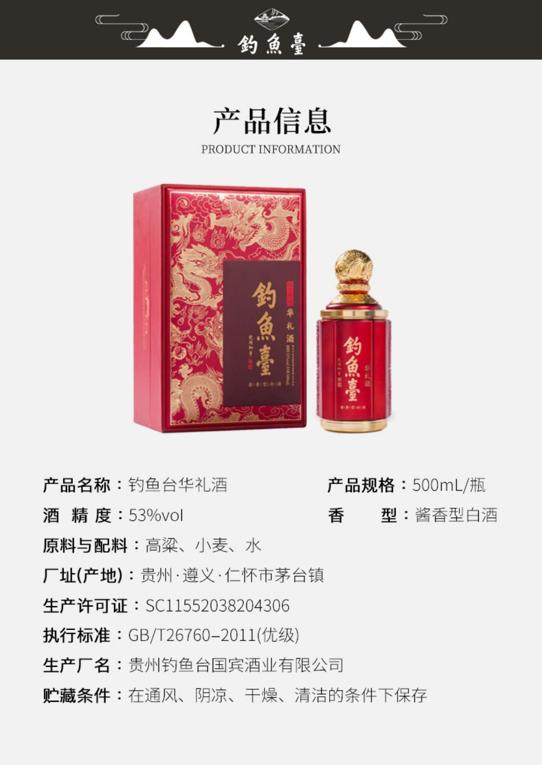 商品名称:贵州钓鱼台酒 华礼酒53度500ml酱香型礼盒装国产高度浓香白酒送礼佳品收藏正品保证防伪