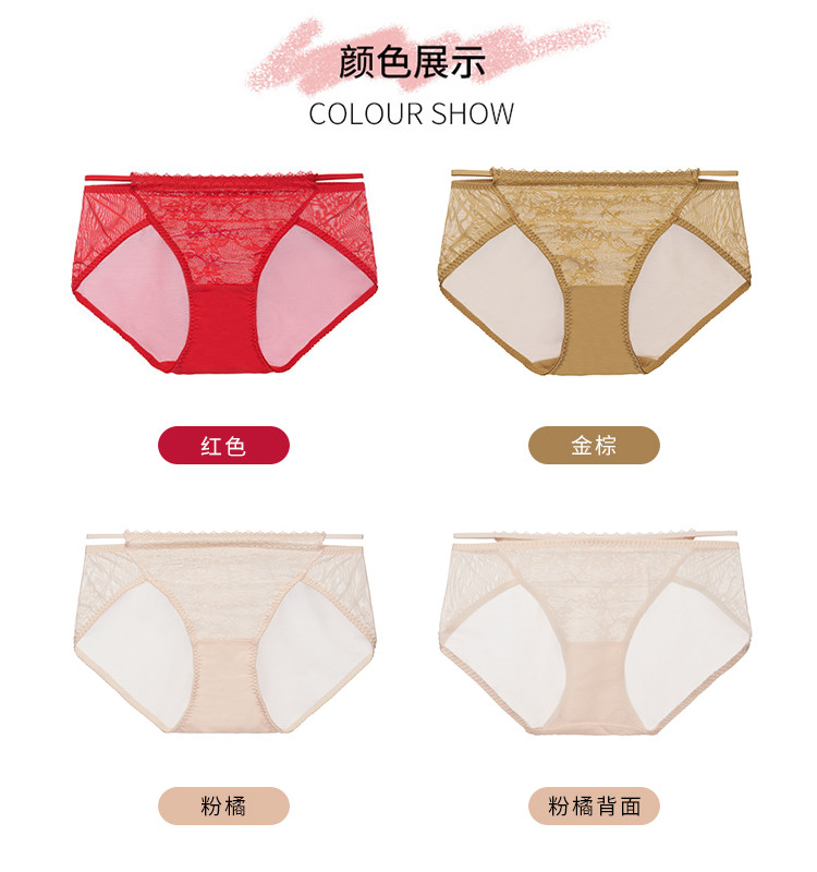 商品名称:蕾丝清透内衣女中低腰本命年红品三角裤内裤 653701