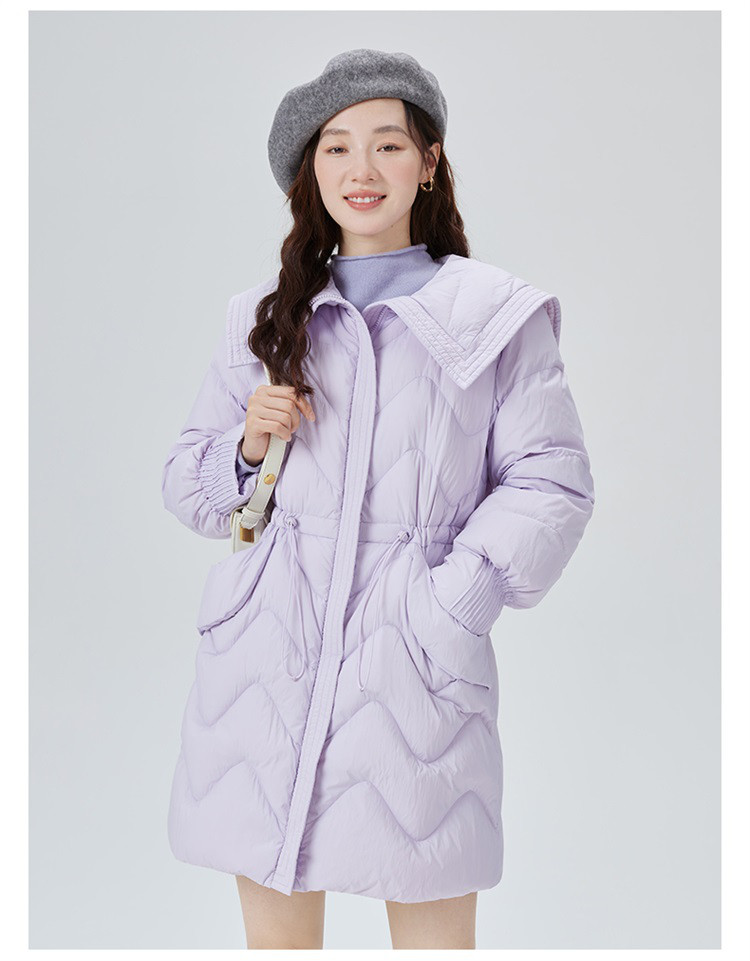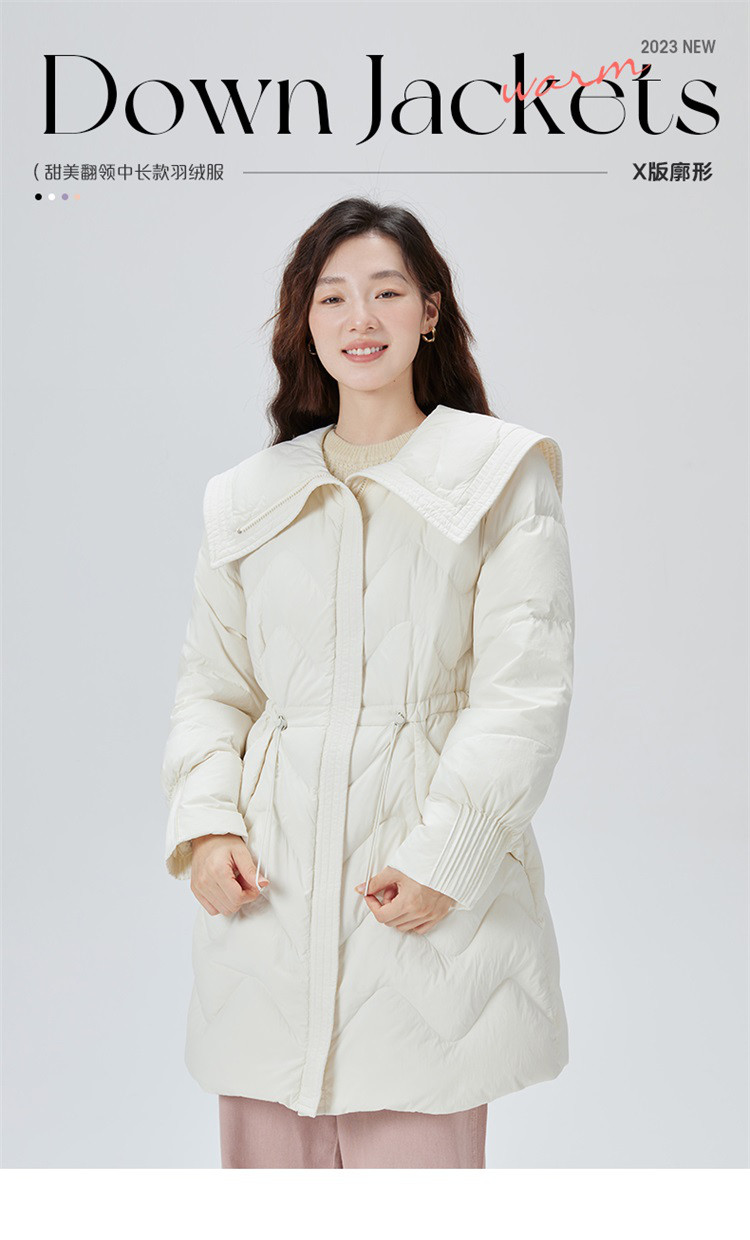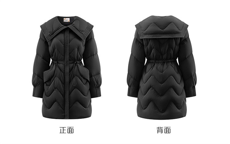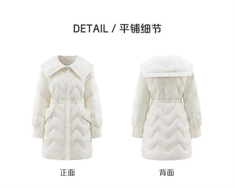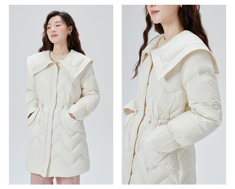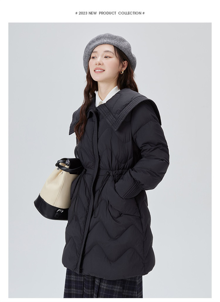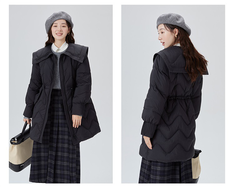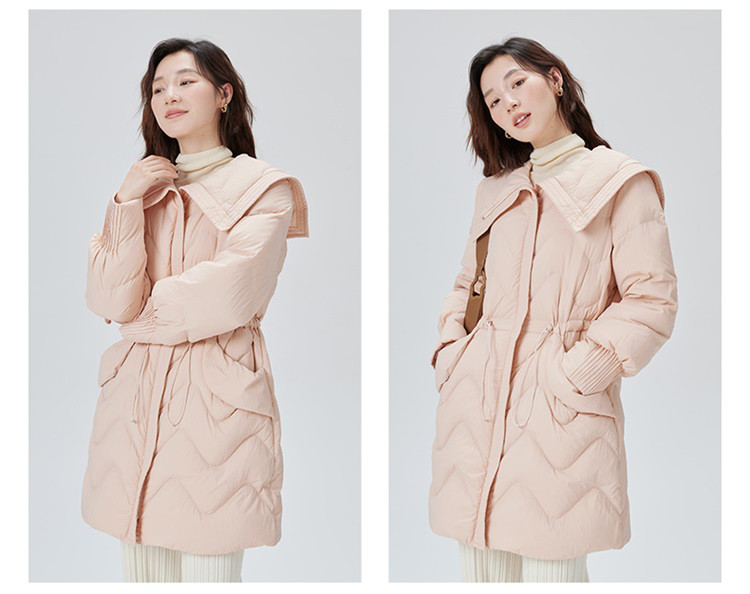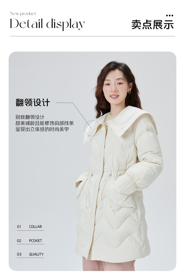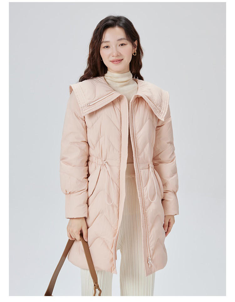 减龄翻领羽绒服女中长款秋冬抽绳收腰女式鸭绒外套女 779990