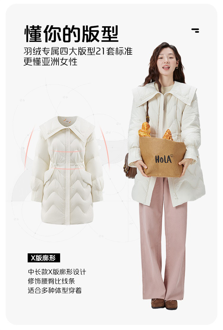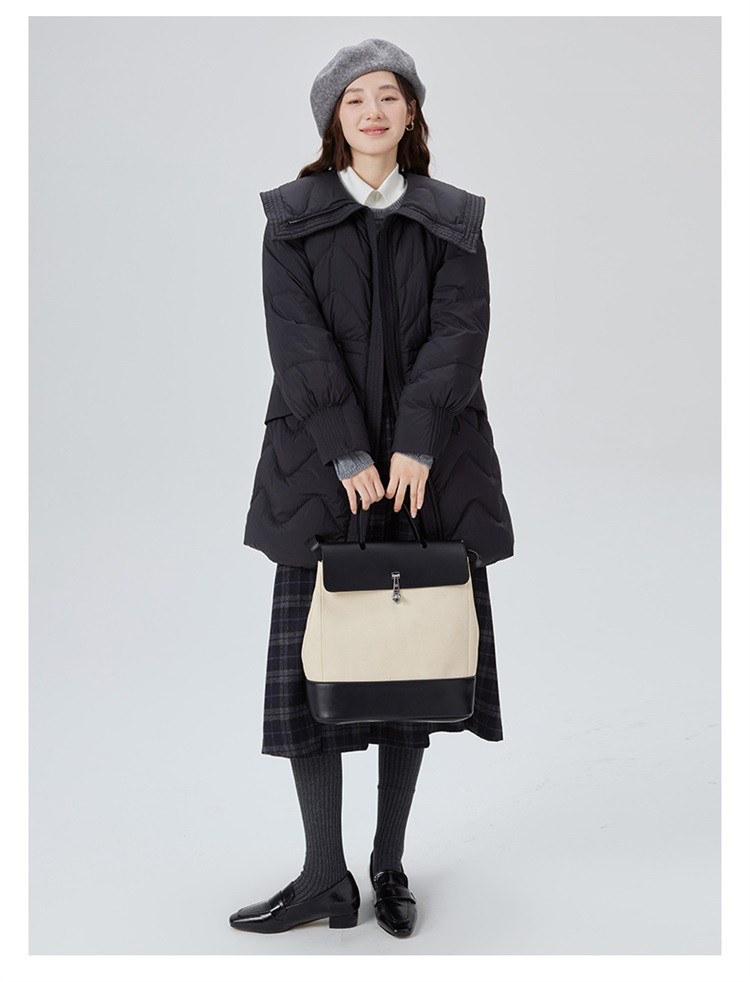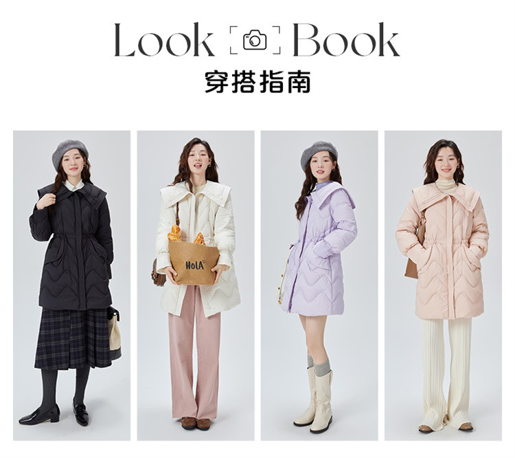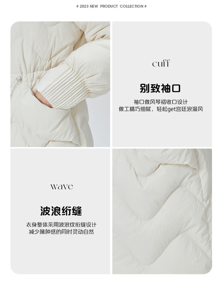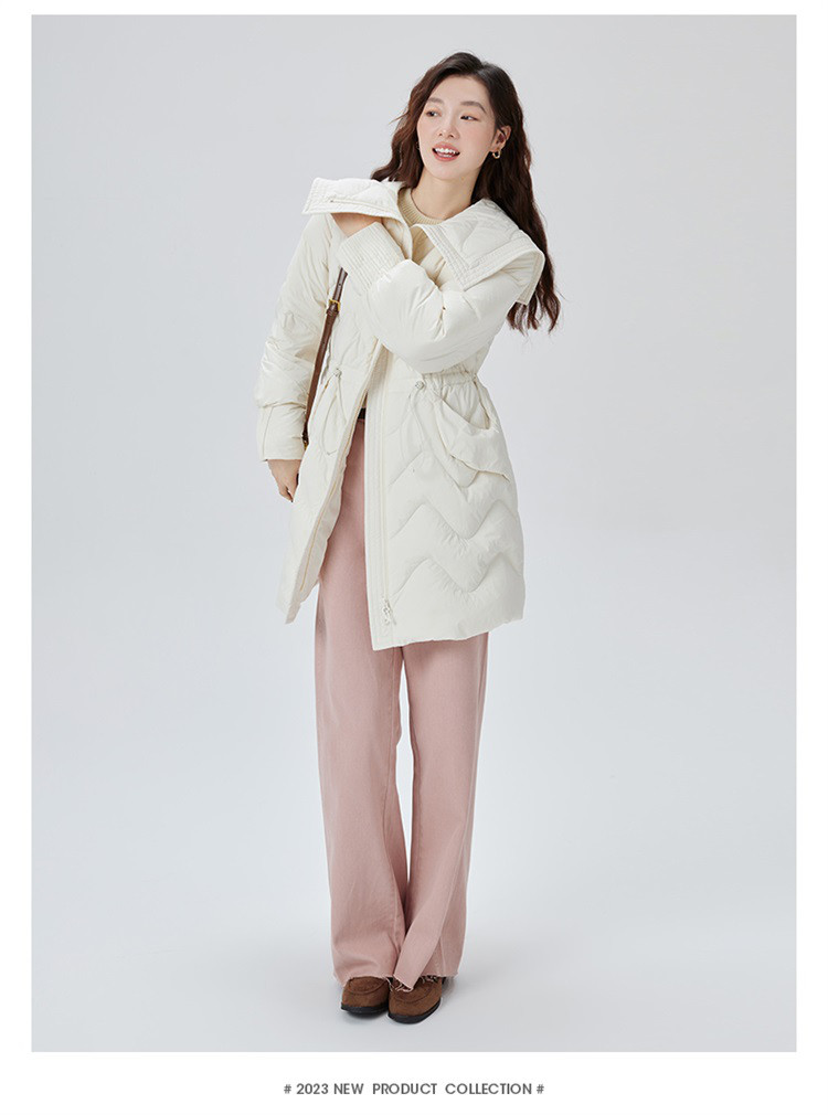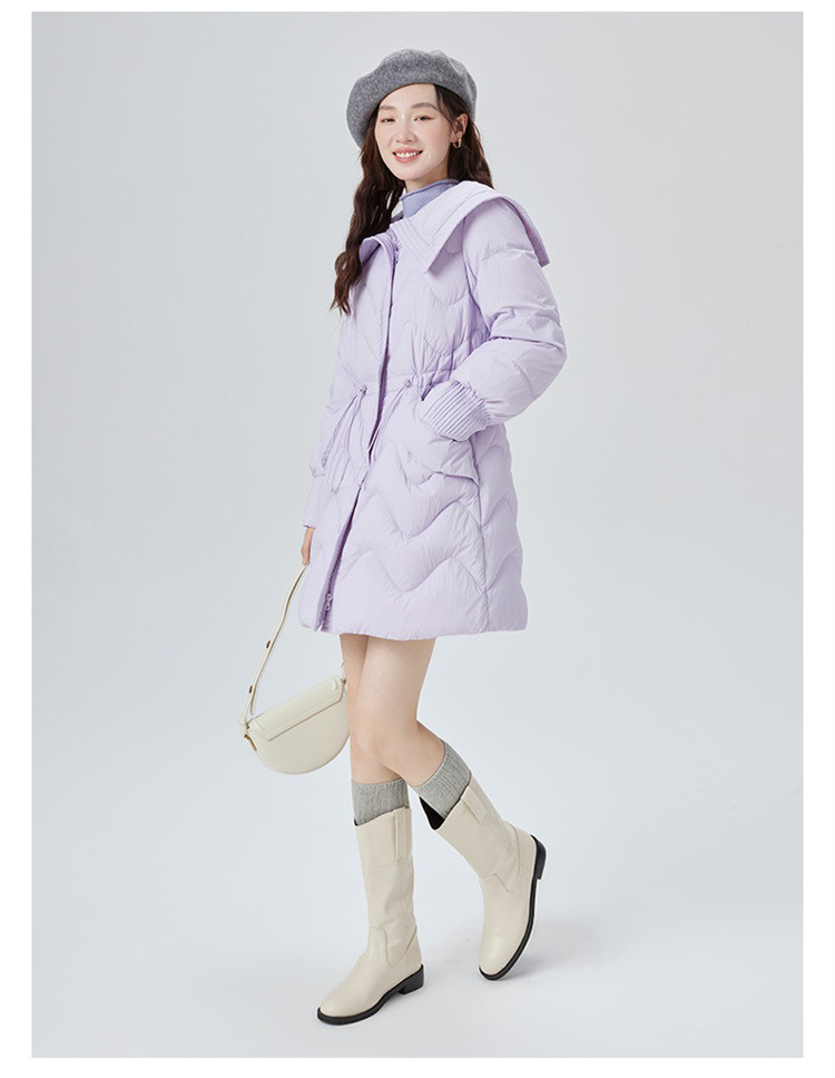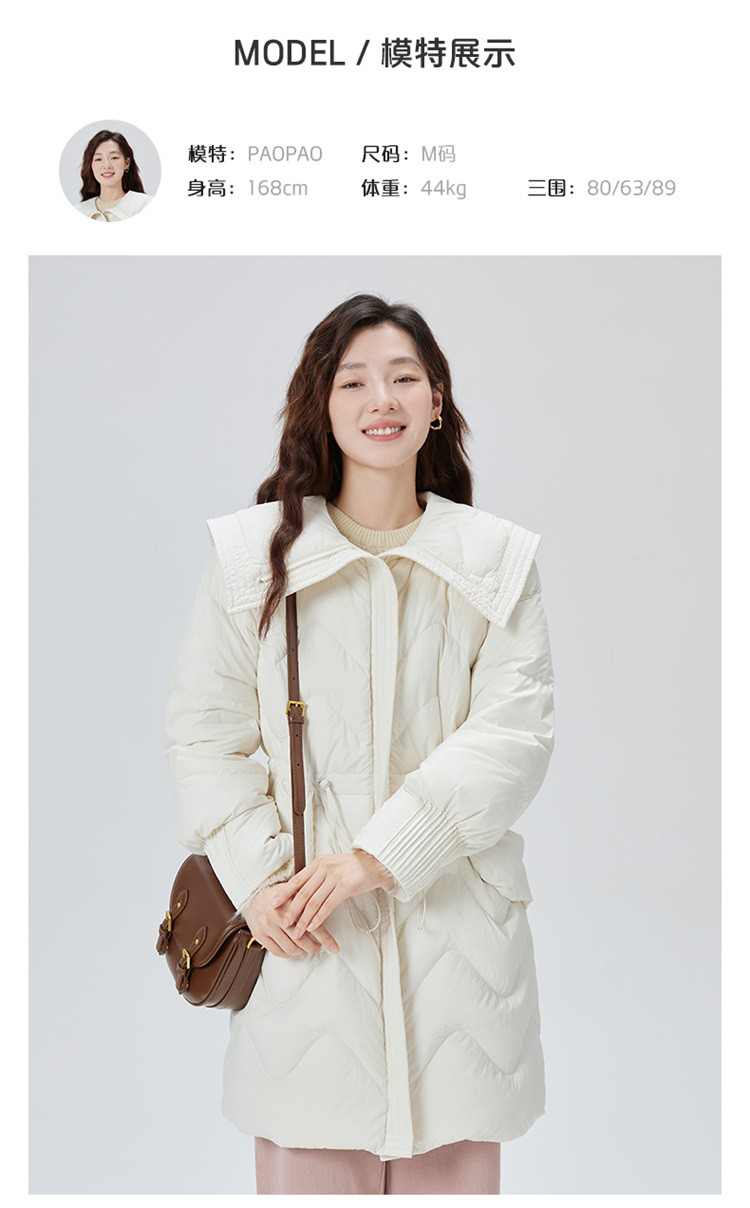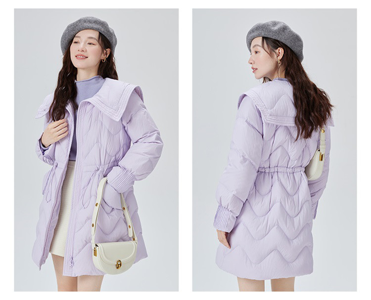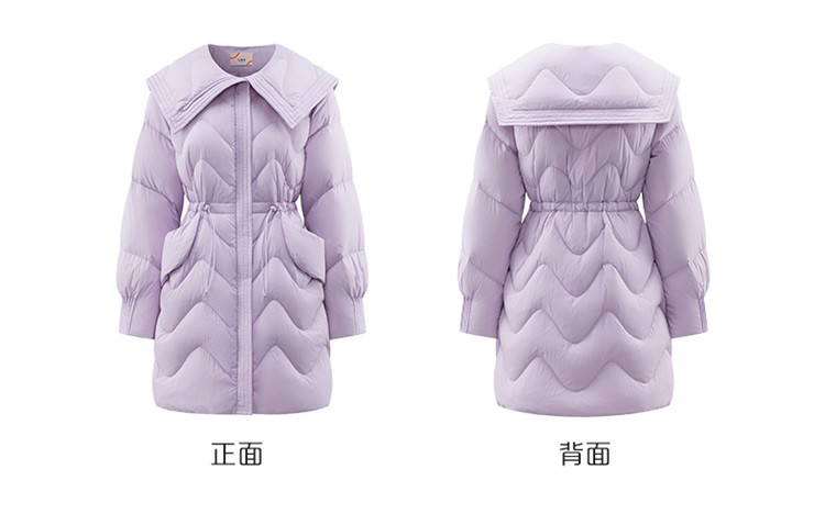 减龄翻领羽绒服女中长款秋冬抽绳收腰女式鸭绒外套女 779990
