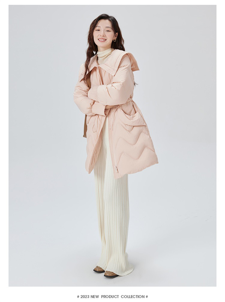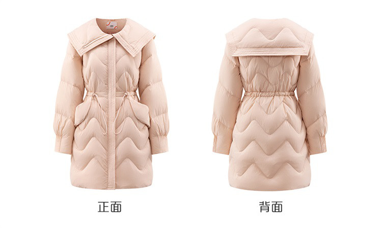 商品名称:减龄翻领羽绒服女中长款秋冬抽绳收腰女式鸭绒外套女 779990