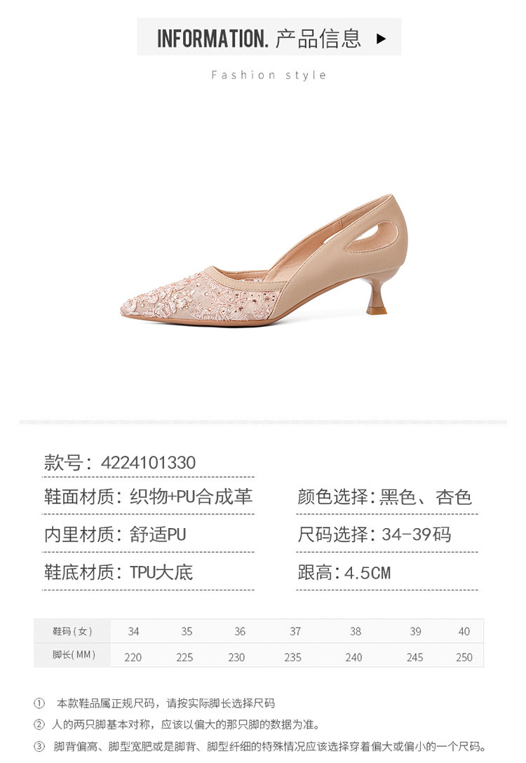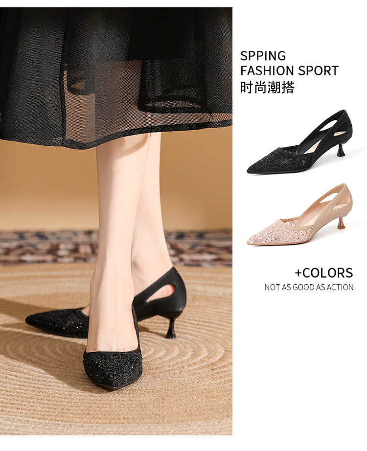商品名称:【热卖爆款】法式尖头时尚单鞋女春夏款细跟浅口时装高跟鞋女 258263
