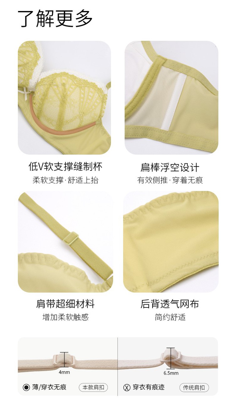 商品名称:【软钢圈】蕾丝软糥透气薄款舒适聚拢内衣女文胸 245765