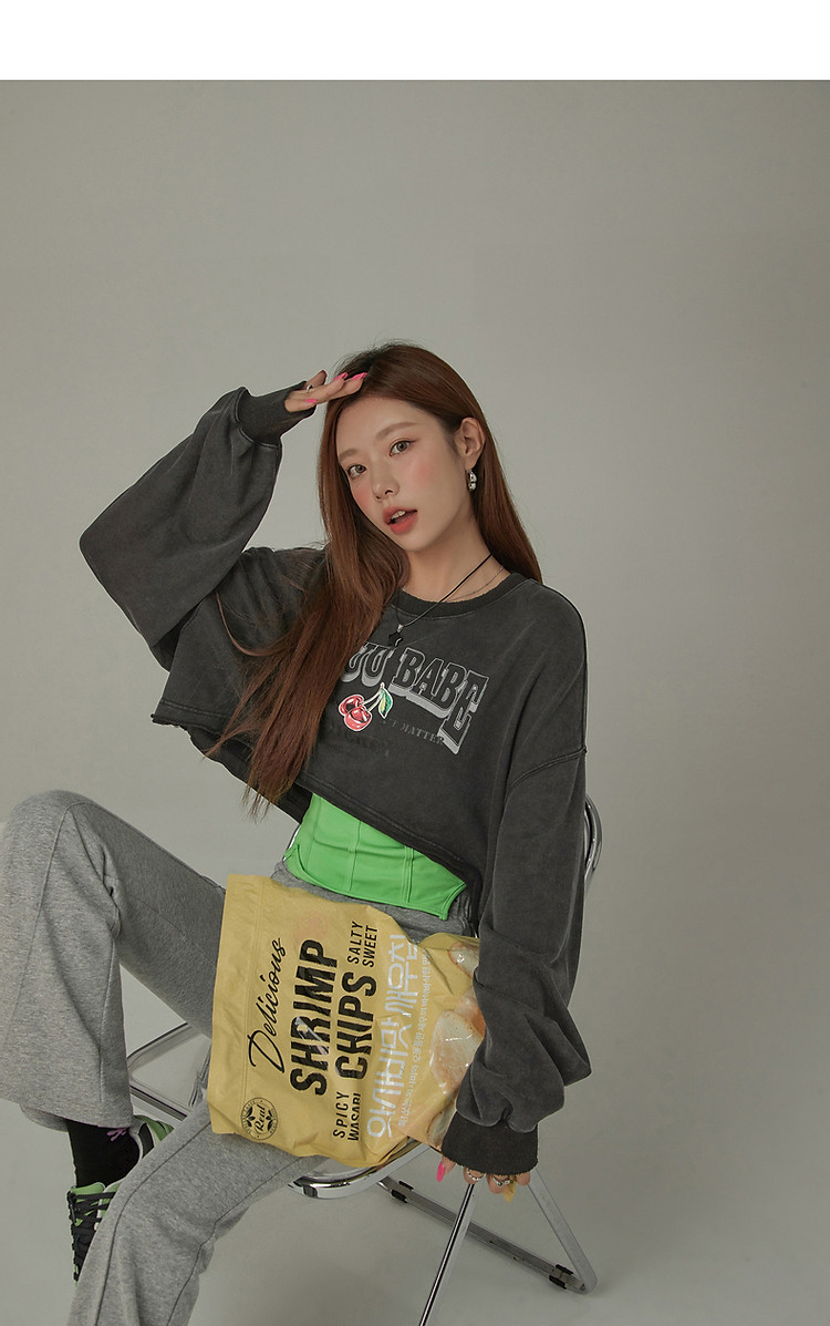 字母印花卫衣女春减龄宽松潮酷个性长袖短款上衣 080531