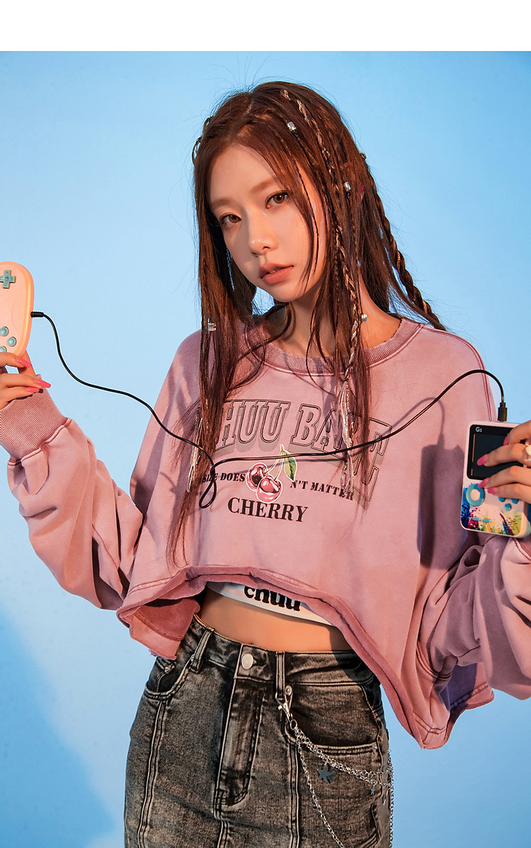 商品名称:字母印花卫衣女春减龄宽松潮酷个性长袖短款上衣 080531
