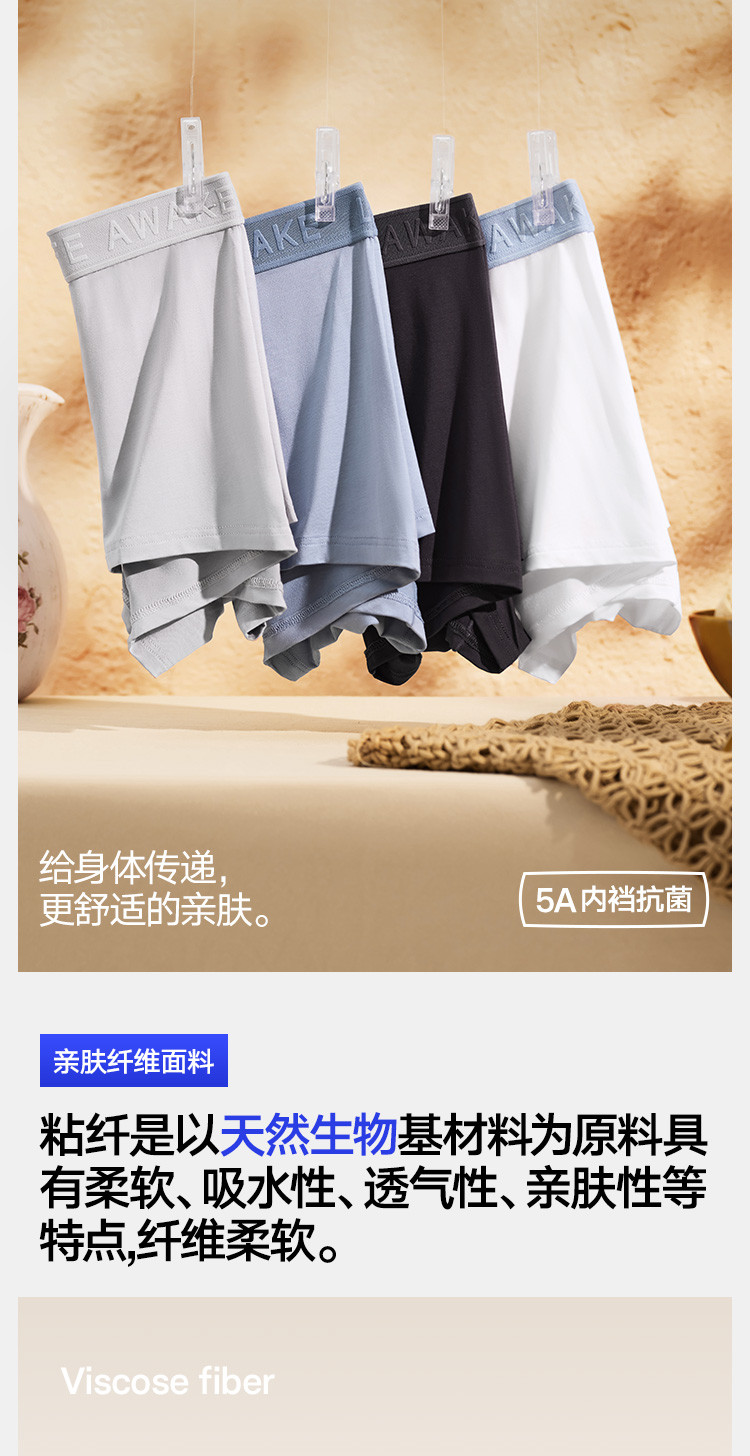 商品名称:【5A抑菌 纯棉裆】4条装男士内裤高端轻奢透气平角内裤男短裤 880218