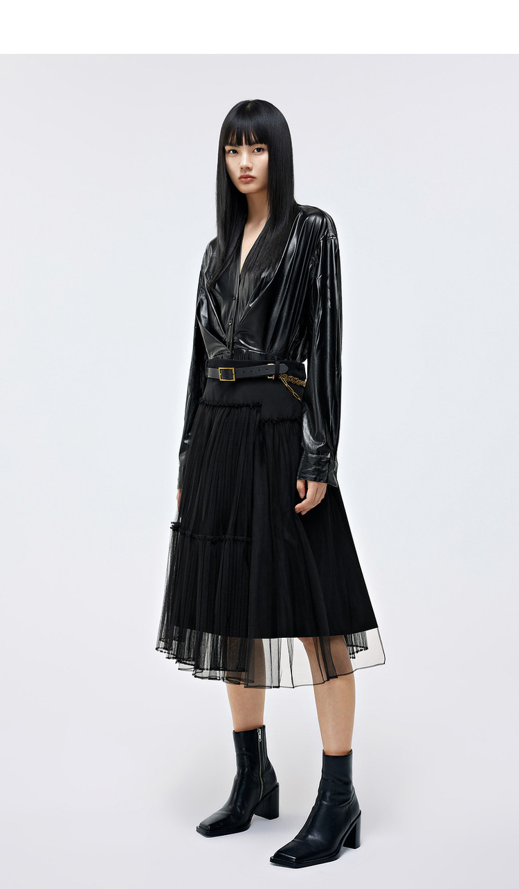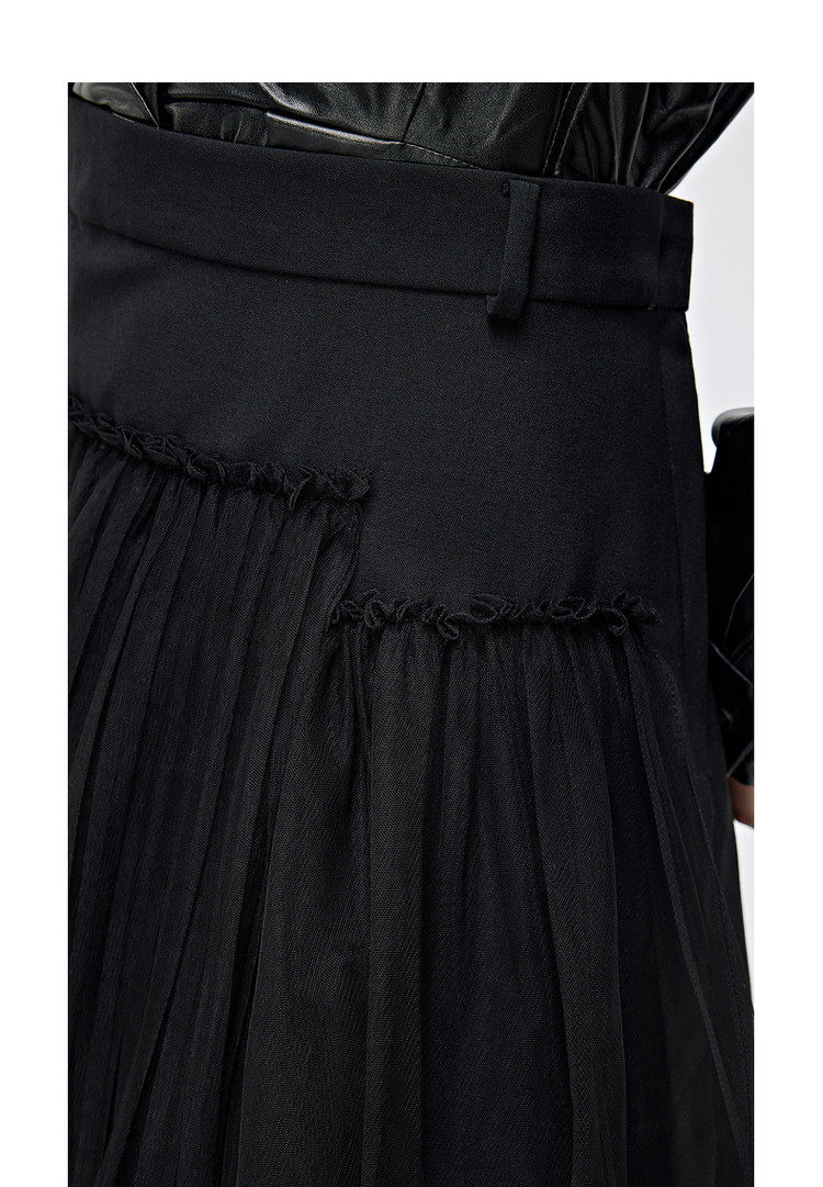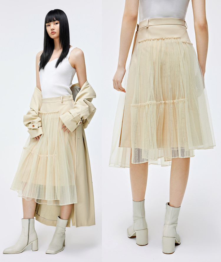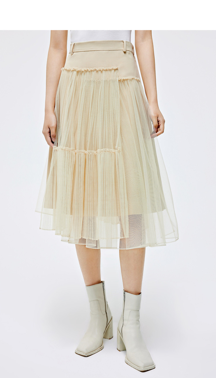 优雅高腰不对称百褶中长裙女气质百搭时尚春夏 192081