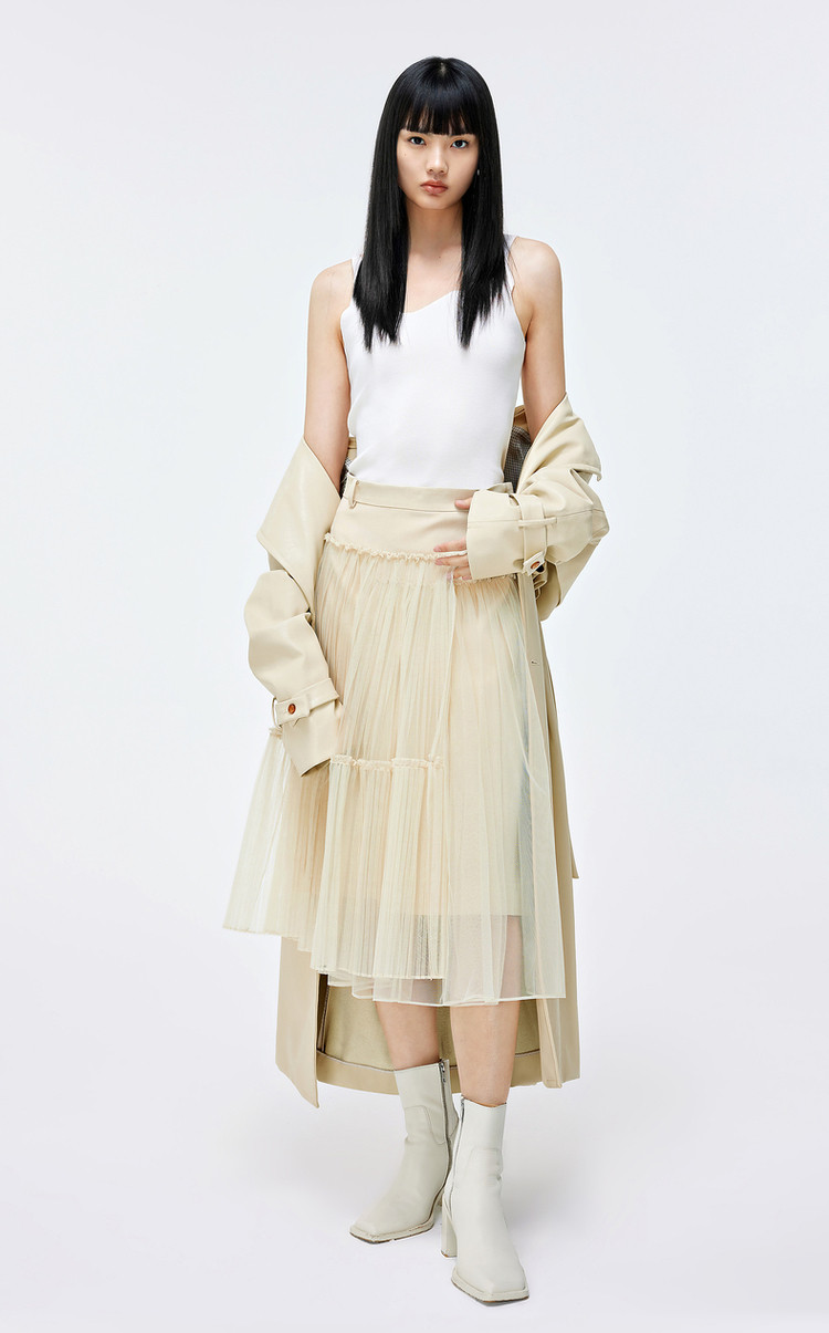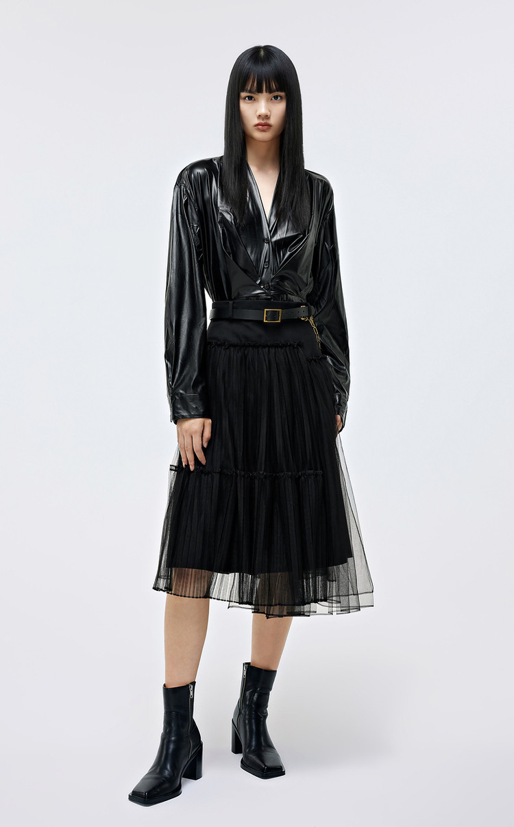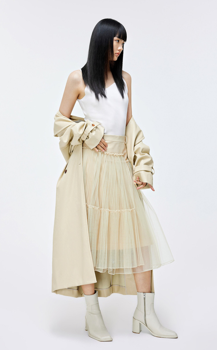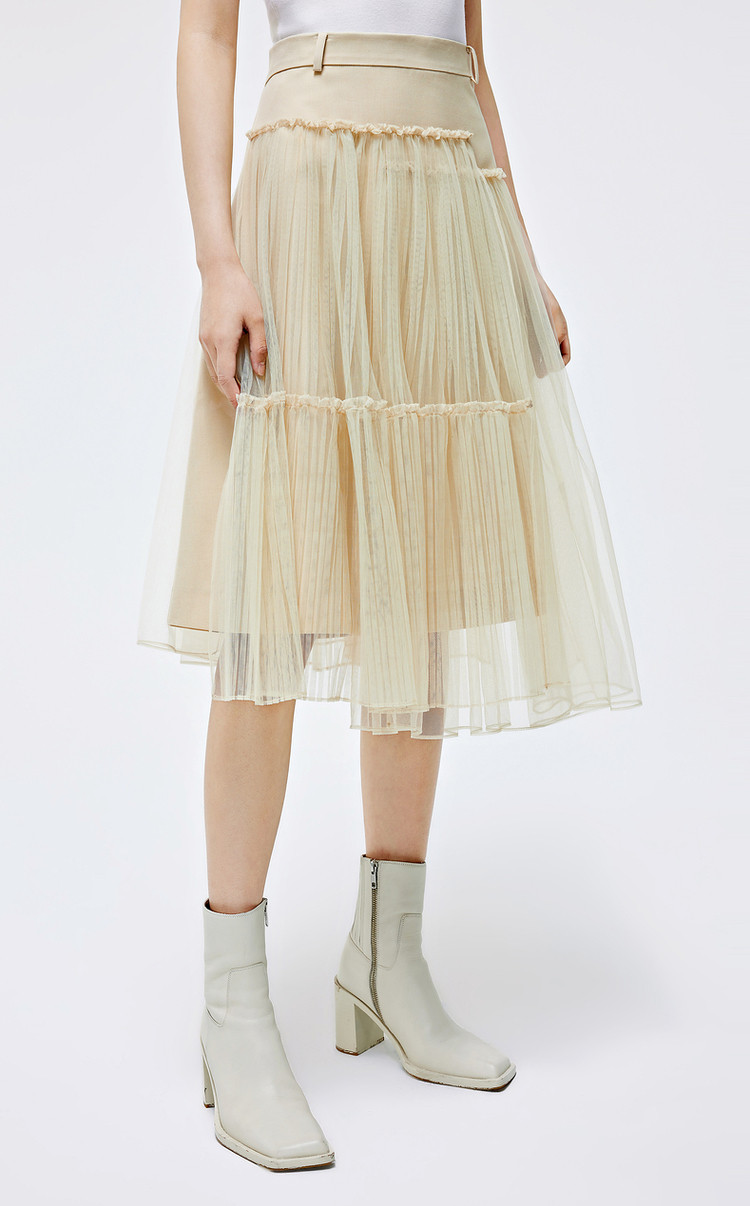 优雅高腰不对称百褶中长裙女气质百搭时尚春夏 192081