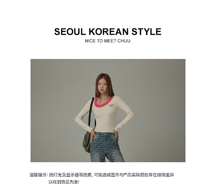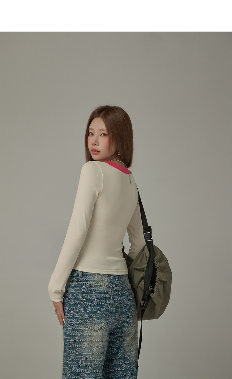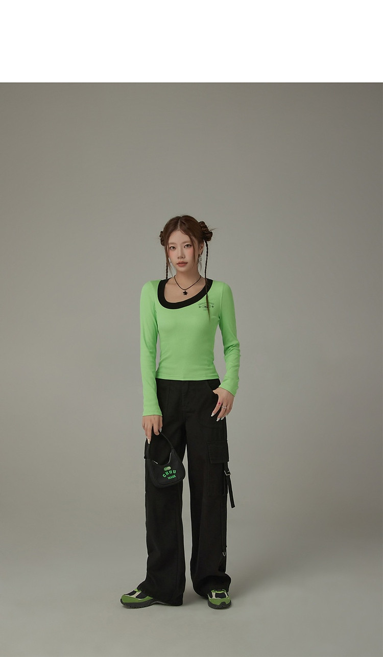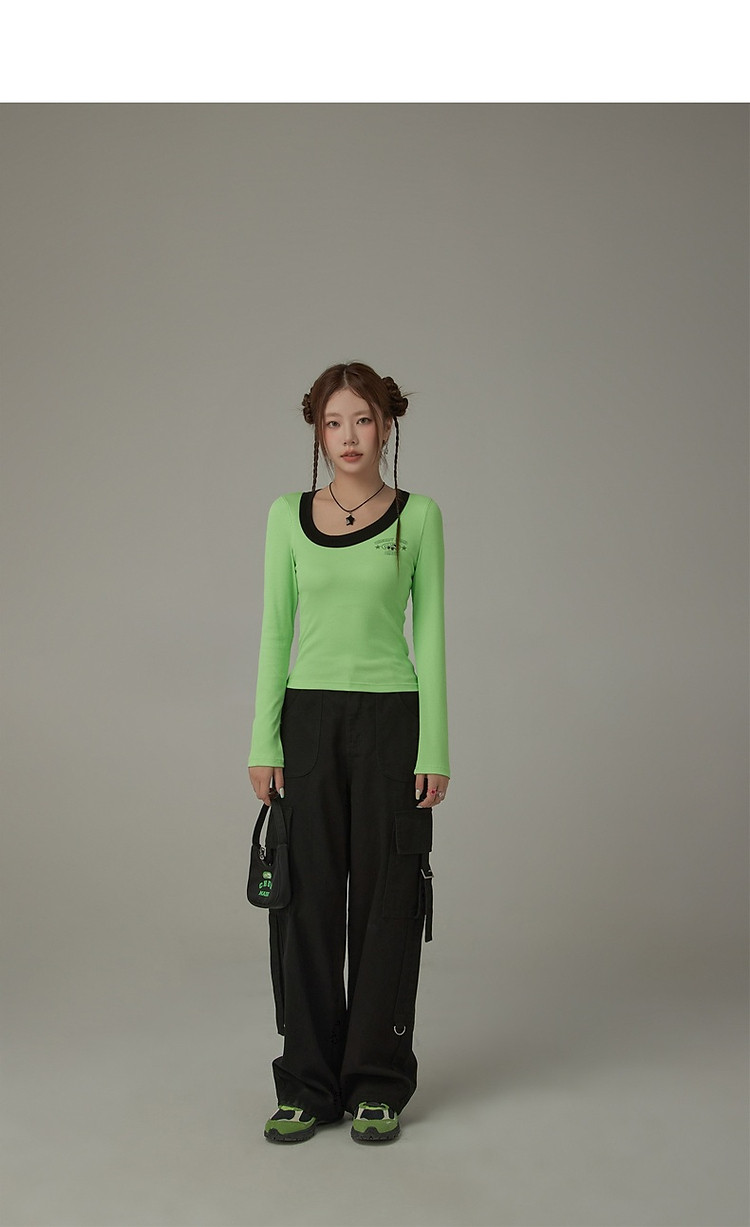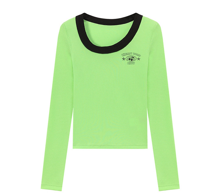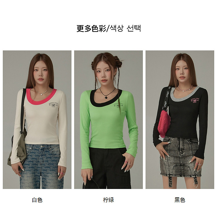 商品名称:字母印花长袖T恤女春秋撞色拼接斜领修身打底上衣 342675