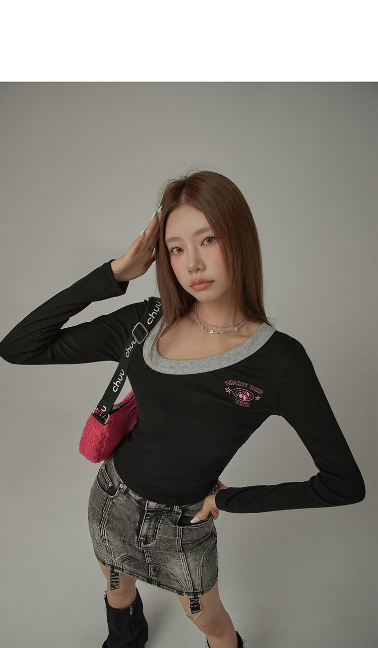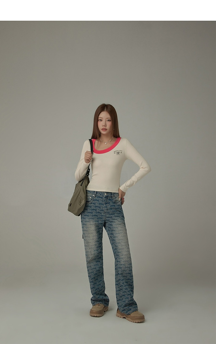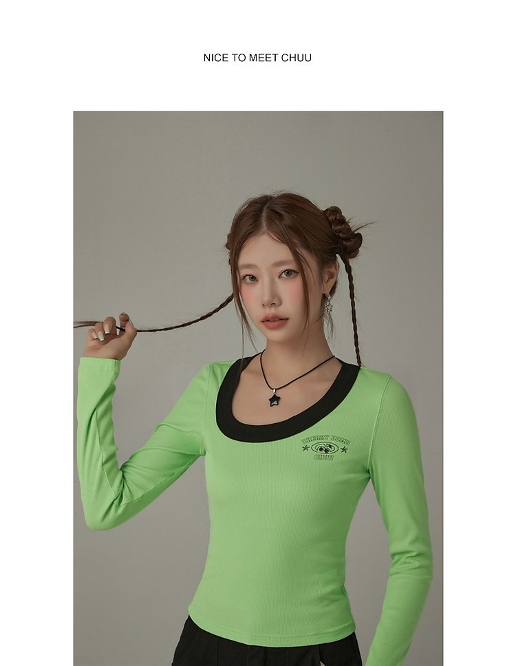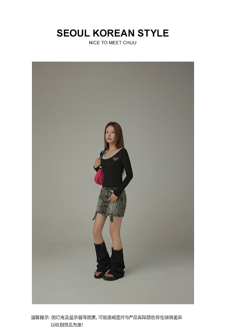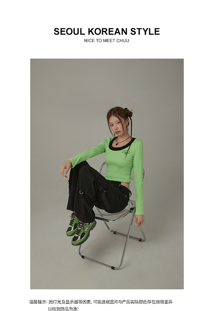 商品名称:字母印花长袖T恤女春秋撞色拼接斜领修身打底上衣 342675