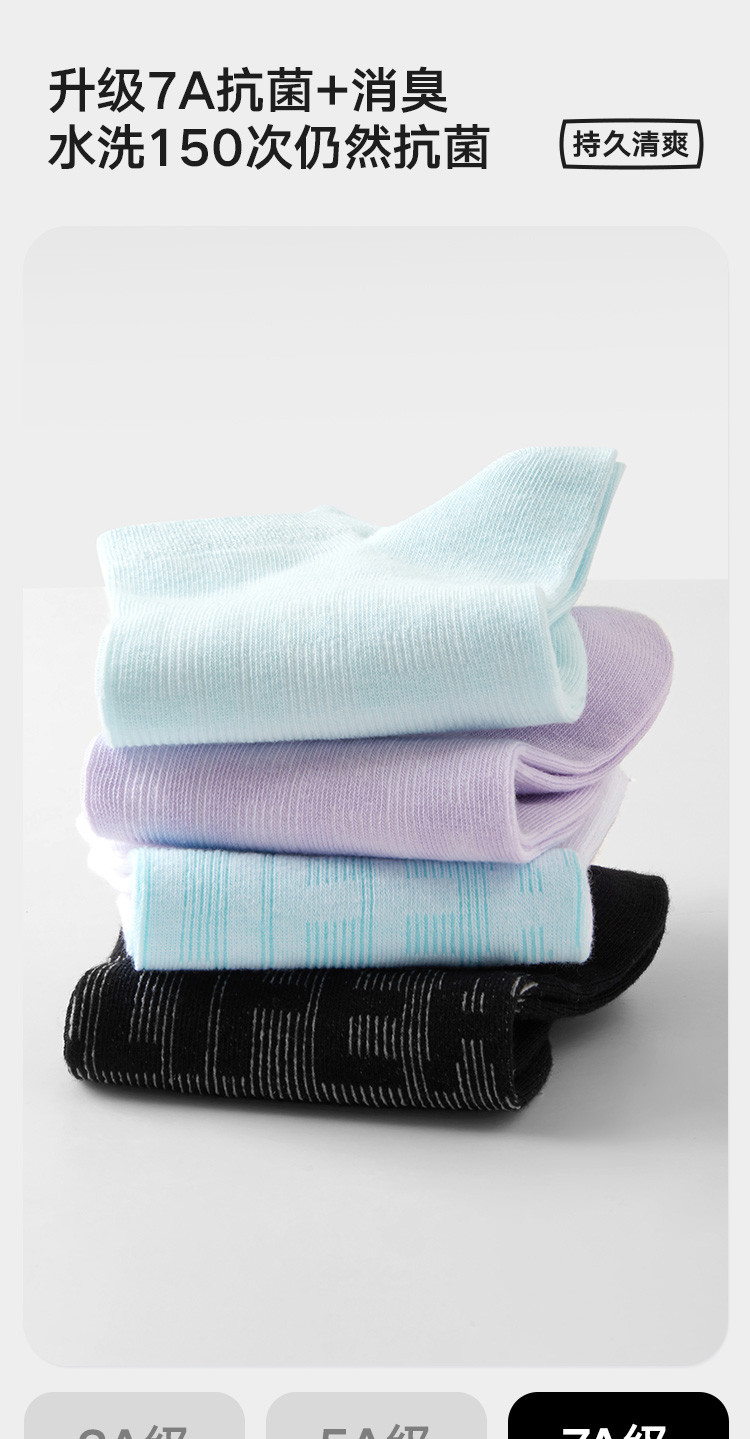 【7A抑菌消臭 防掉跟】5双装夏季女士短筒袜轻薄透气提耳袜子 090074